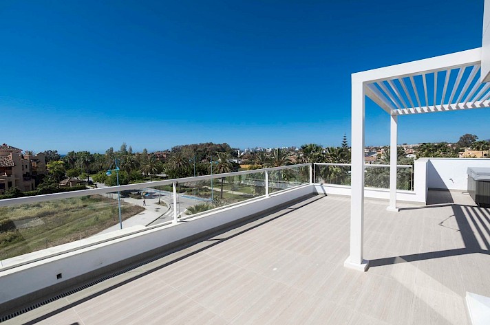 Brand new, modern penthouse on the beachside of San Pedro de Alcantara. A truly special property, with a southern orientation, gorgeous sea views and a sleek clean design. Within 5 minutes walk to the town centre, shops restaurants, amenities, and some 200m away from the beach, location is perfect. The penthouse has a jacuzzi, 3 parking spaces and a storage room.