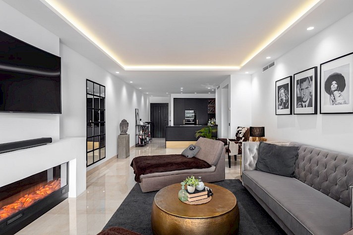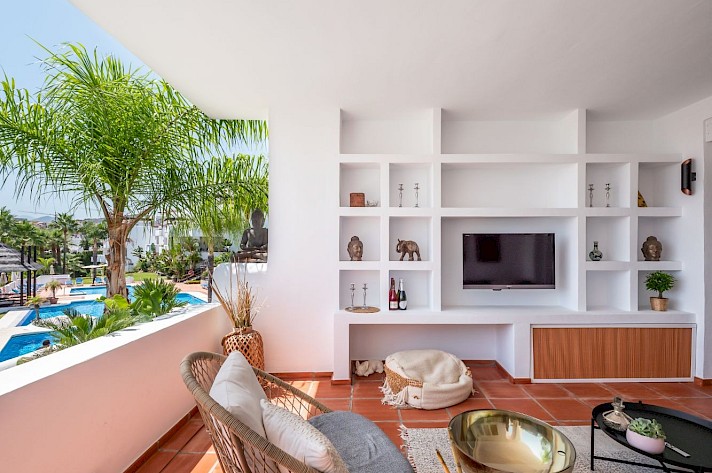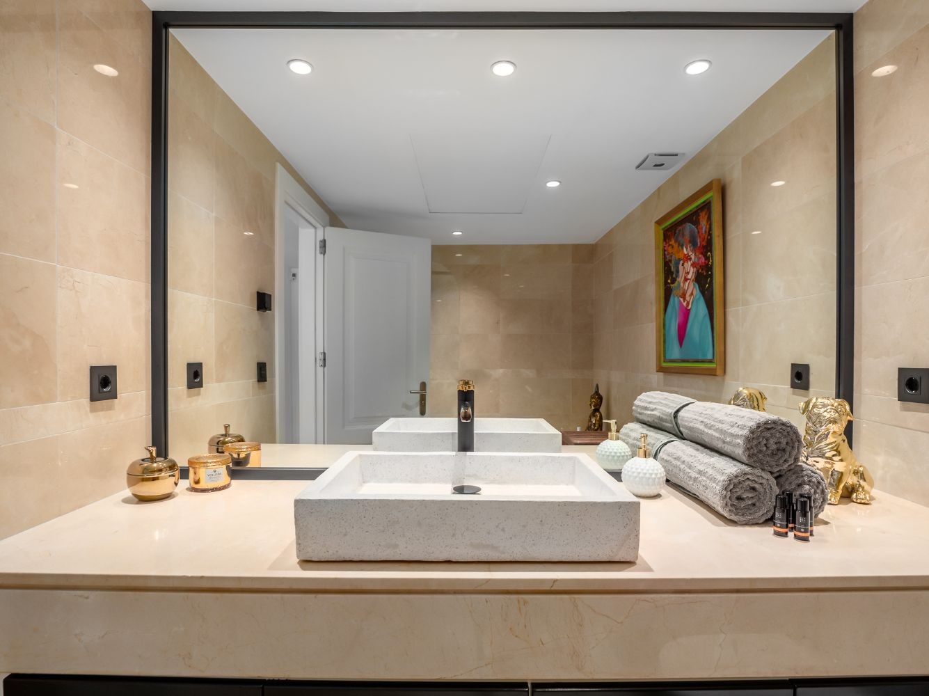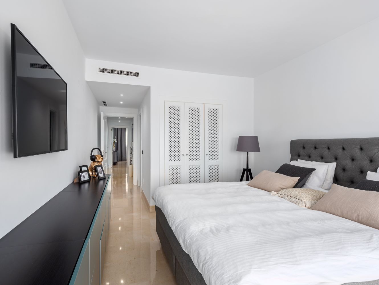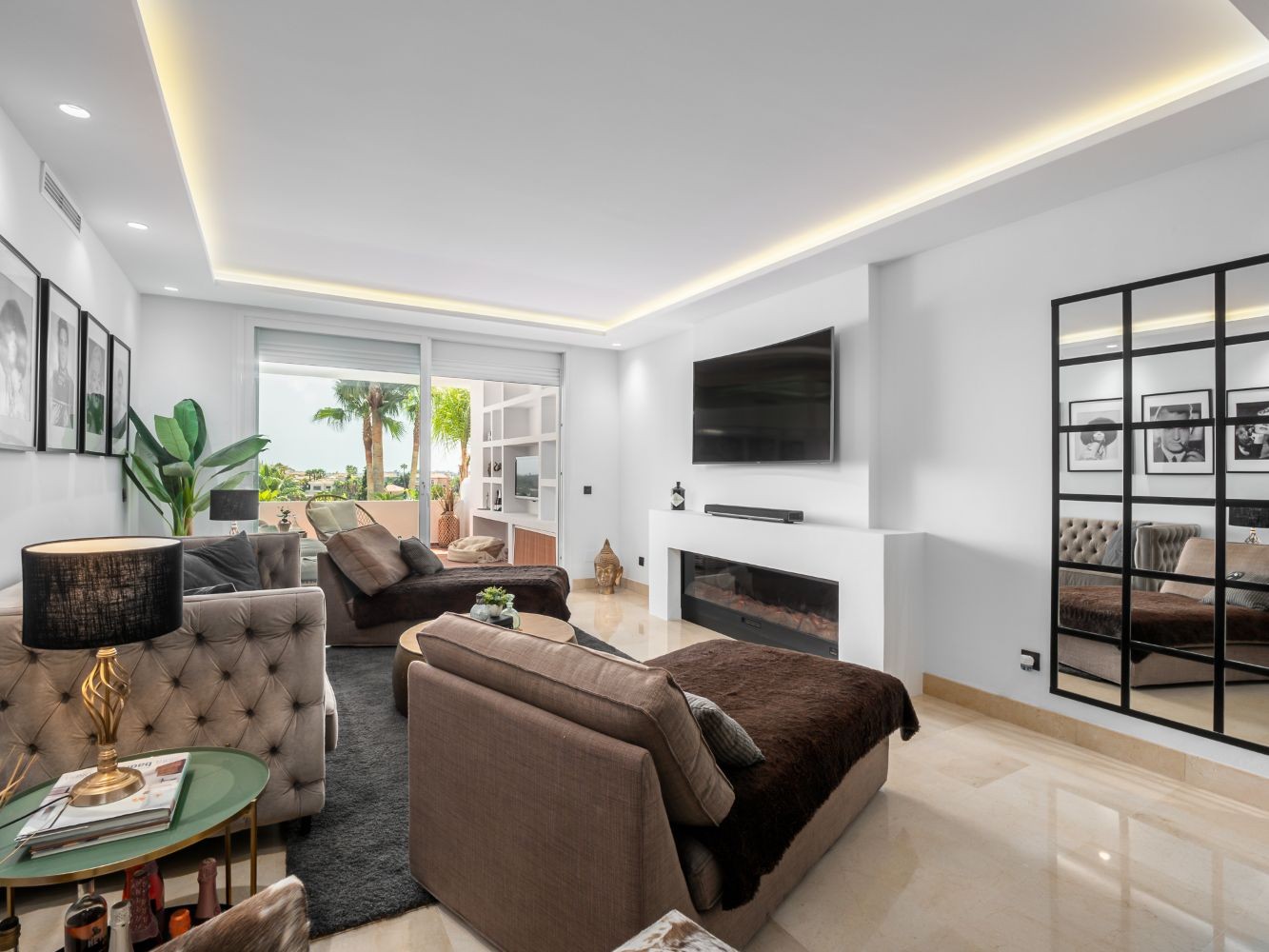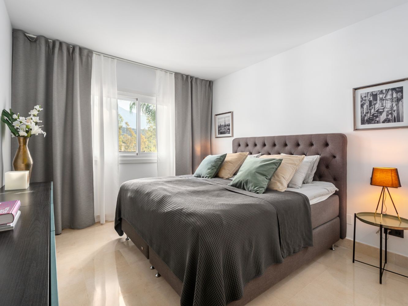 Located in a prestigous urbanization, in the hills of Nueva Andalucia. Direct access from the garage up to the renovated apartment with 3 bedrooms and 2 bathrooms, open floor plan with kitchen and living room area. From the living room area and master bedroom with direct access to the spacious terrace with lounge, dining and barbeque area, and a fantastic view over Gibraltar to the afternoon and evening sun.