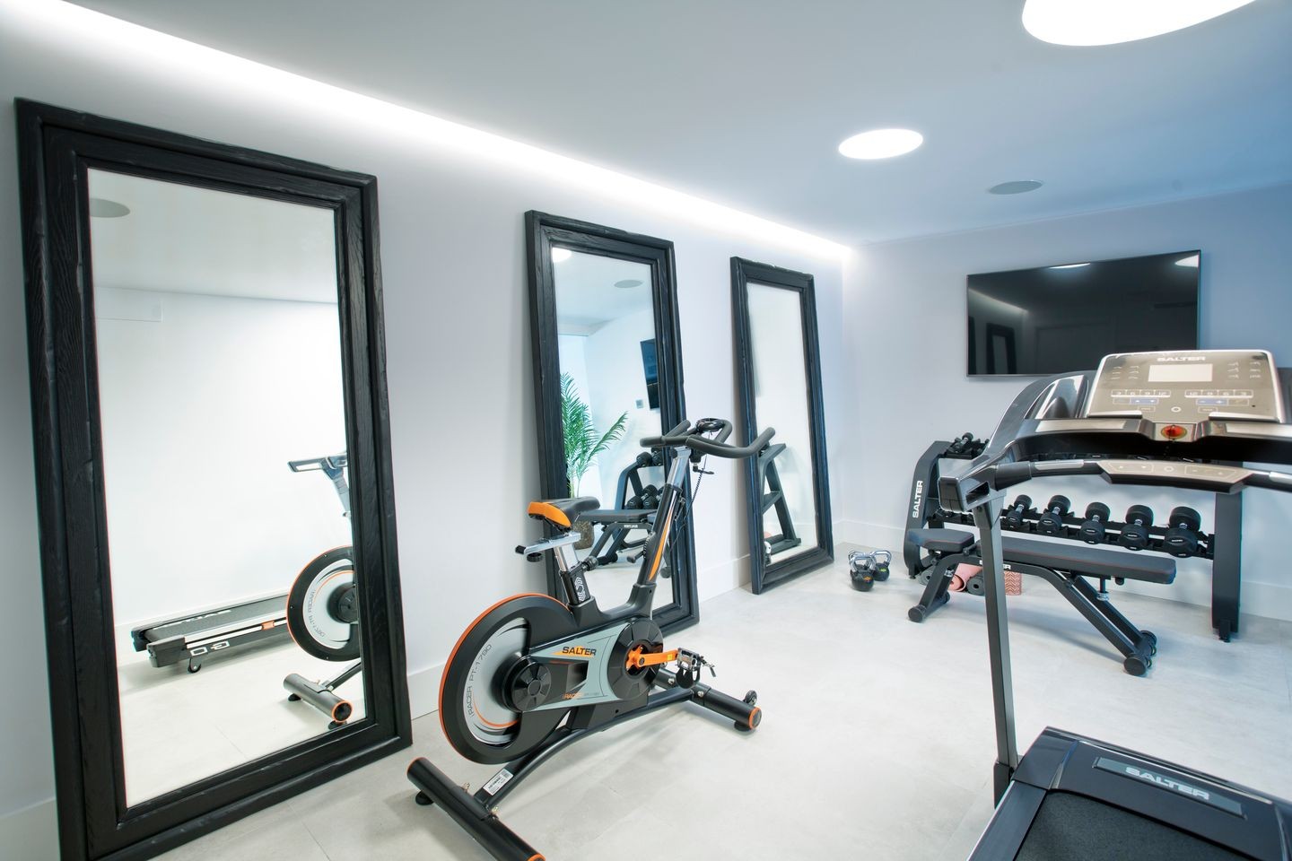The lower floor is designed for entertainment! You have a movie room, gym, bar and temperature-controlled wine cellar. The seating area and fuzzball-game. Thoughtfully designed for every need. On this floor, you also have two more guest suites and garage.