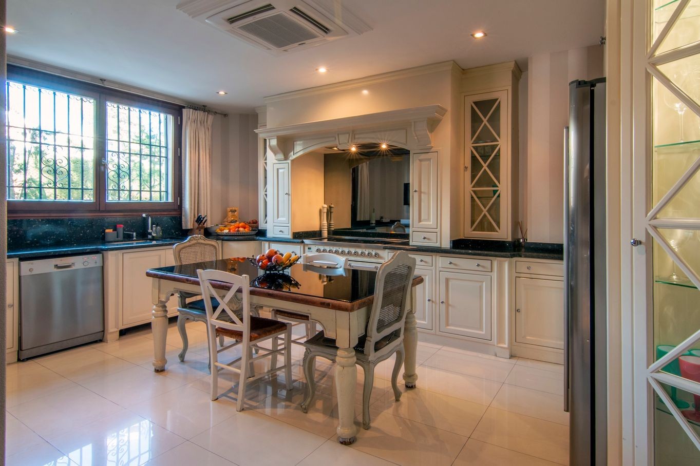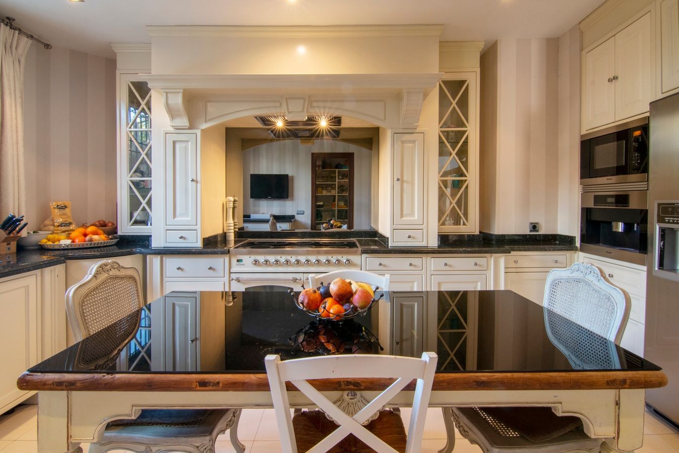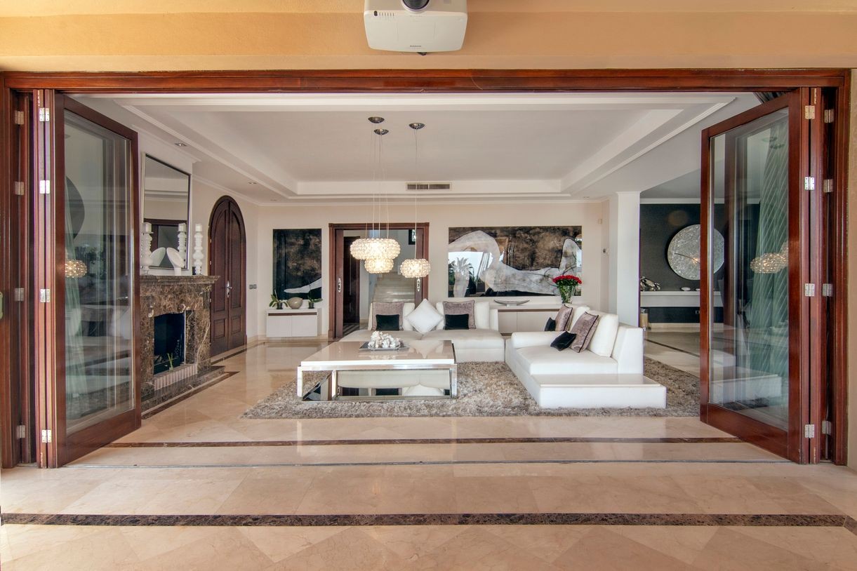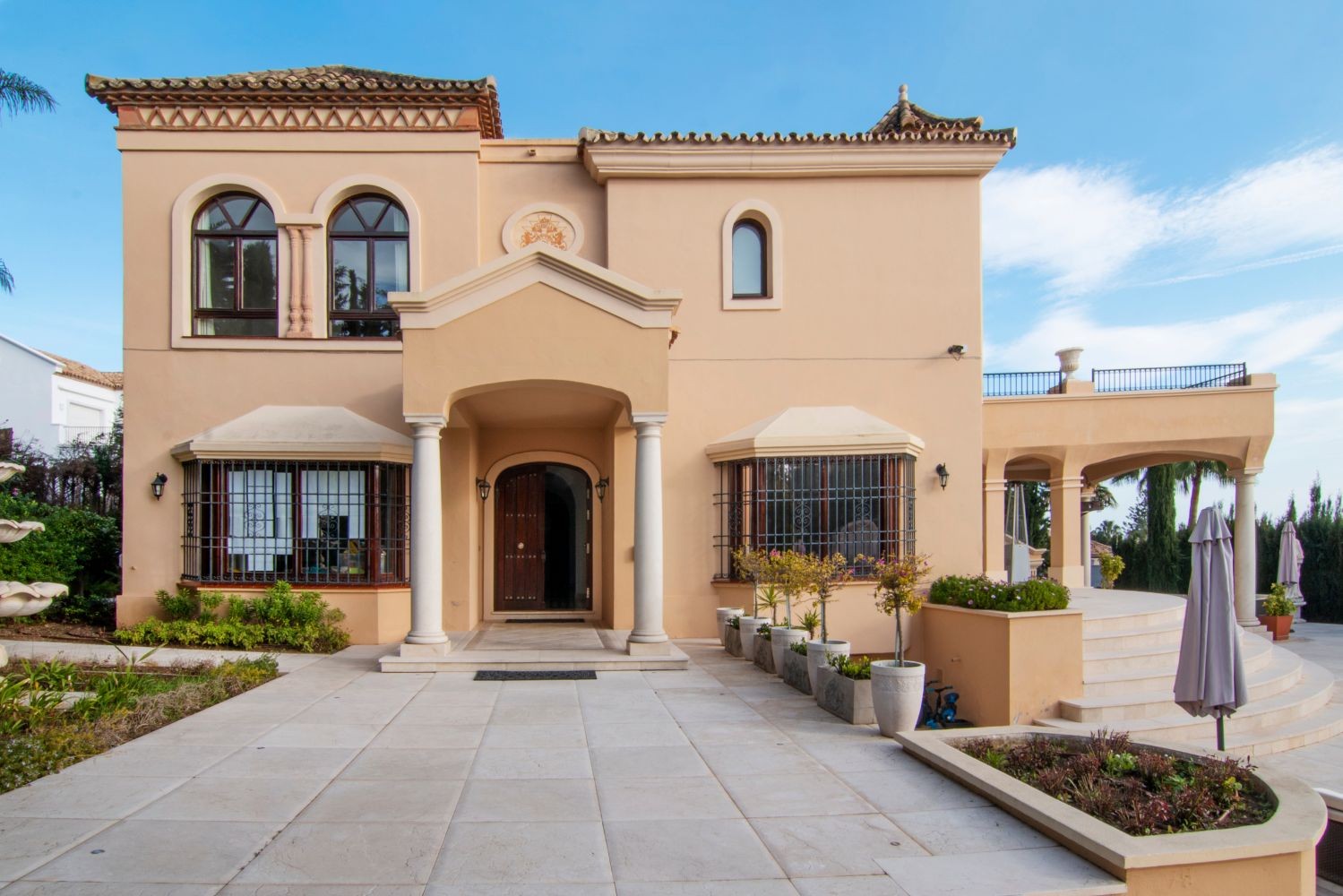 A grand mansion located in one of the most secure areas of Sierra Blanca. This villa commands stunning sea views and light filled rooms. Upon entering this large corner plot you are met with a fantastic pool and terrace perfect for entertaining on summer days. There is also an outdoor kitchen area with bar and barbecue. The house itself has had various updates and offers a classical yet neutral style for its future buyer. Upstairs are four spacious bedrooms, all en suite, and with beautiful views. On the ground floor there is a homely open living-dining area and a further two rooms that can be used as office spaces, or living area. Towards the back of the house is a spacious and inviting kitchen which leads to a pantry and out to a very private terrace - perfect to cool off in summer evenings. Downstairs is a large space that is currently divided into a large fully equipped gym, a games room, bedroom, independent kitchen and garage.