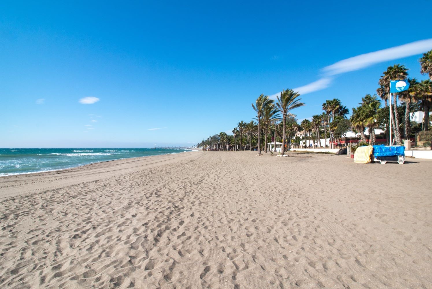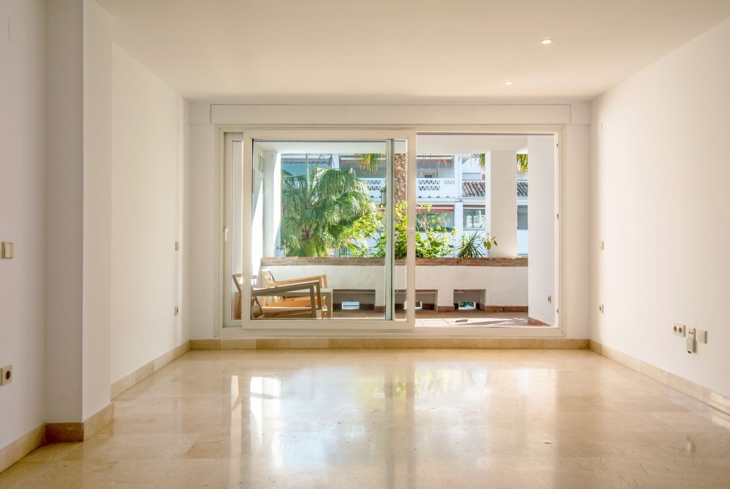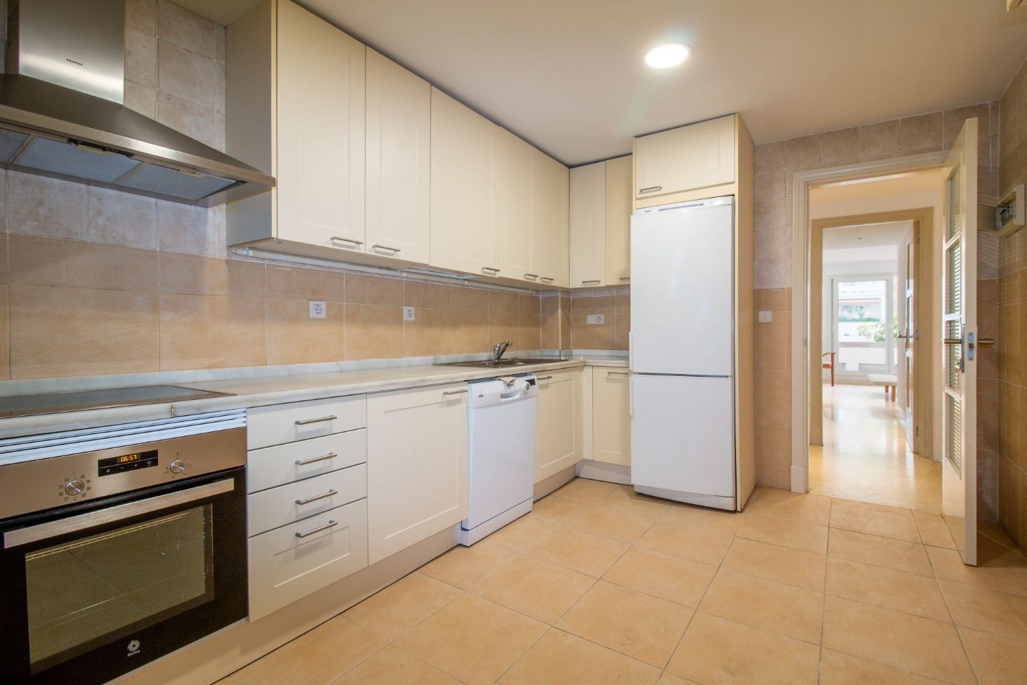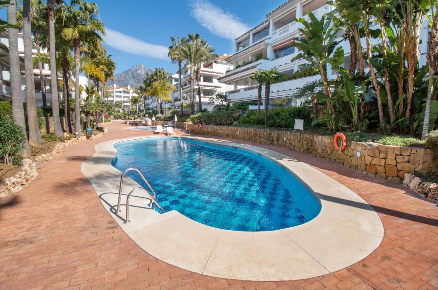 This 2 bedroom apartment is located in a beachfront gated community in Marbella's Golden Mile with beautiful tropical gardens and four swimming pools. The lighty property enjoys morning sun and comprises a large entrance hall, living/dining room opening onto a spacious covered terrace overlooking the gardens and swimming pools towards the mountains and the sea. Master bedroom with en-suite bathroom, guest bedroom with separate bathroom and fully fitted kitchen with breakfast area and adjoined utility room. Both bedrooms have access to the terrace. Other features include: underground car parking space and A/C hot and cold. The gated complex is within walking distance to restaurants, supermarkets and other amenities . 24hr security service, concierge and direct access to the promenade, El Trocadero and the beach. A superb property, close to all amenities and within a five minute drive to Marbella centre and Puerto Banus.
