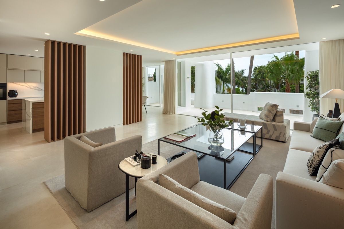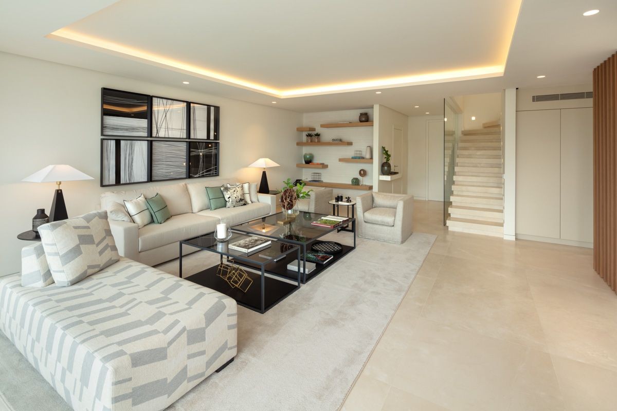 This newly renovated four-bedroom duplex penthouse in the heart of Puente Romano on Marbella’s Golden Mile is an exquisitely styled property just a few steps from the beach and moments from a wealth of 5-star amenities.