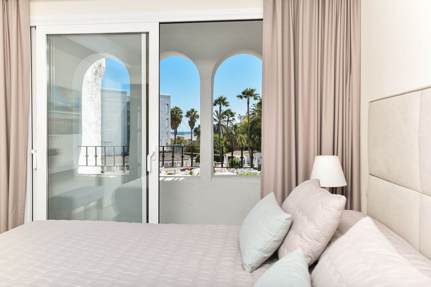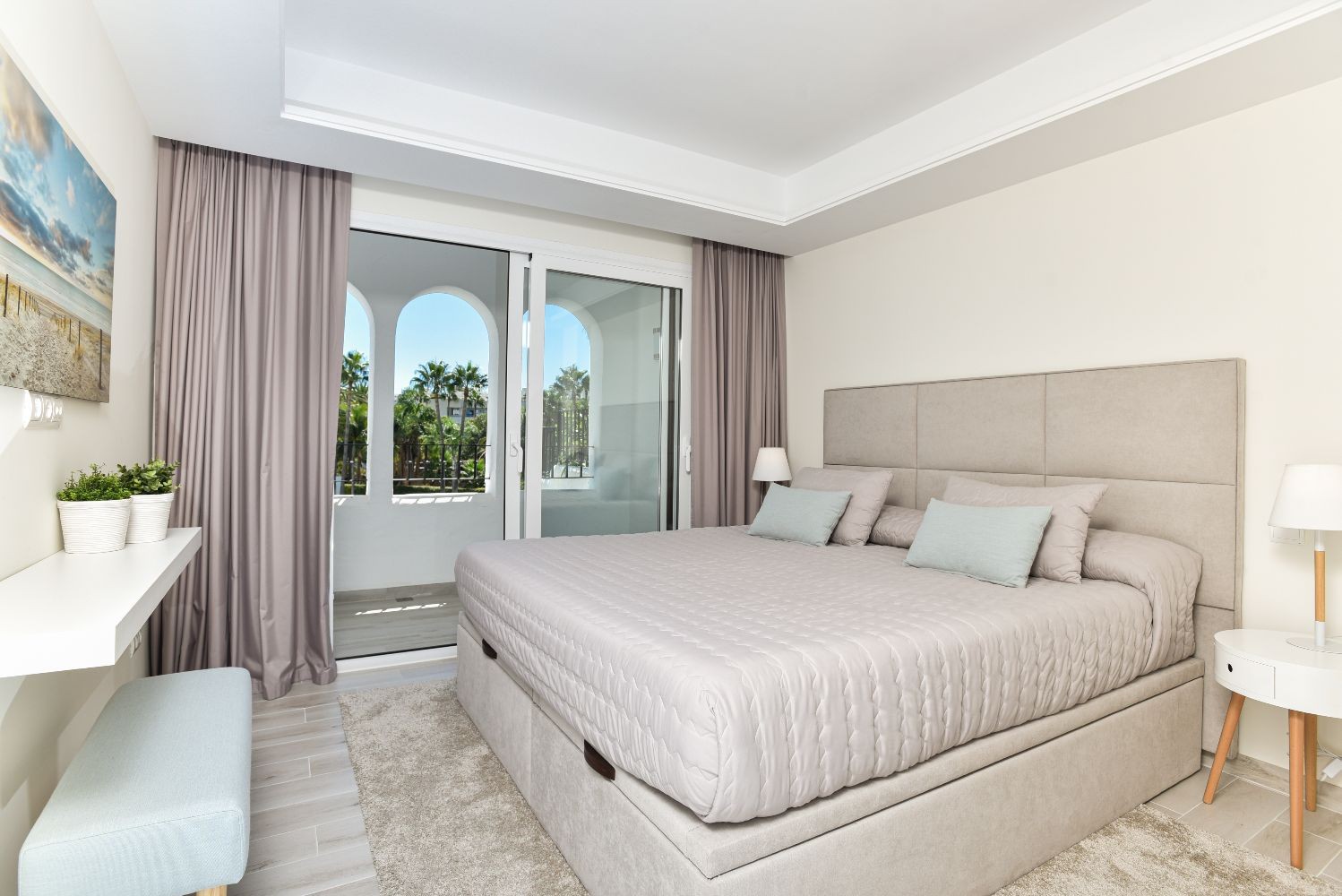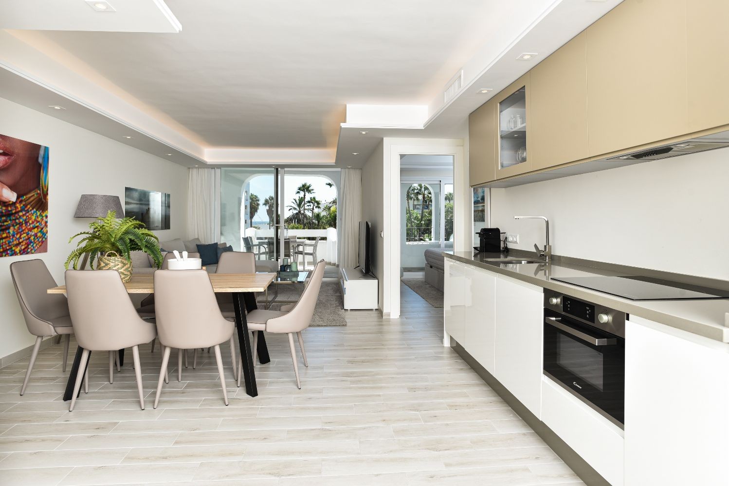 BEACHSIDE- Recently reformed three bedroom apartment just a short stroll to the beach and all amenities in Puerto Banus. The gated complex enjoys of 36 apartments, boasting twenty-four hour security & concierge service, a large communal pool, restaurant in-site, spa facilities and games room for children. This South-East facing and bright apartment is distributed as; Entrance hall, living/dining area enjoying access to a covered terrace, fully fitted oplen plan kitchen, master bedroom with en-suite bathroom, two further guest bedrooms sharing one bathroom. There is an assigned underground parking space.