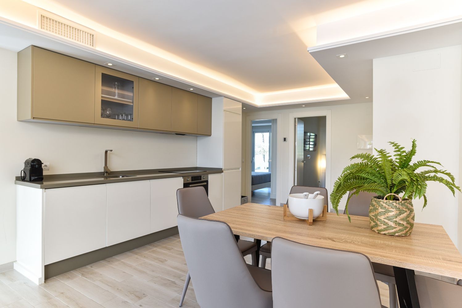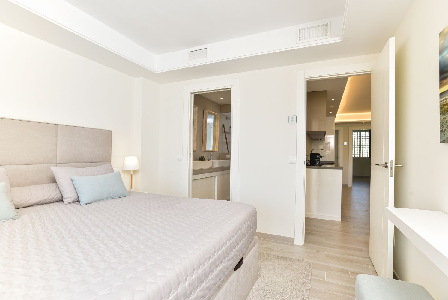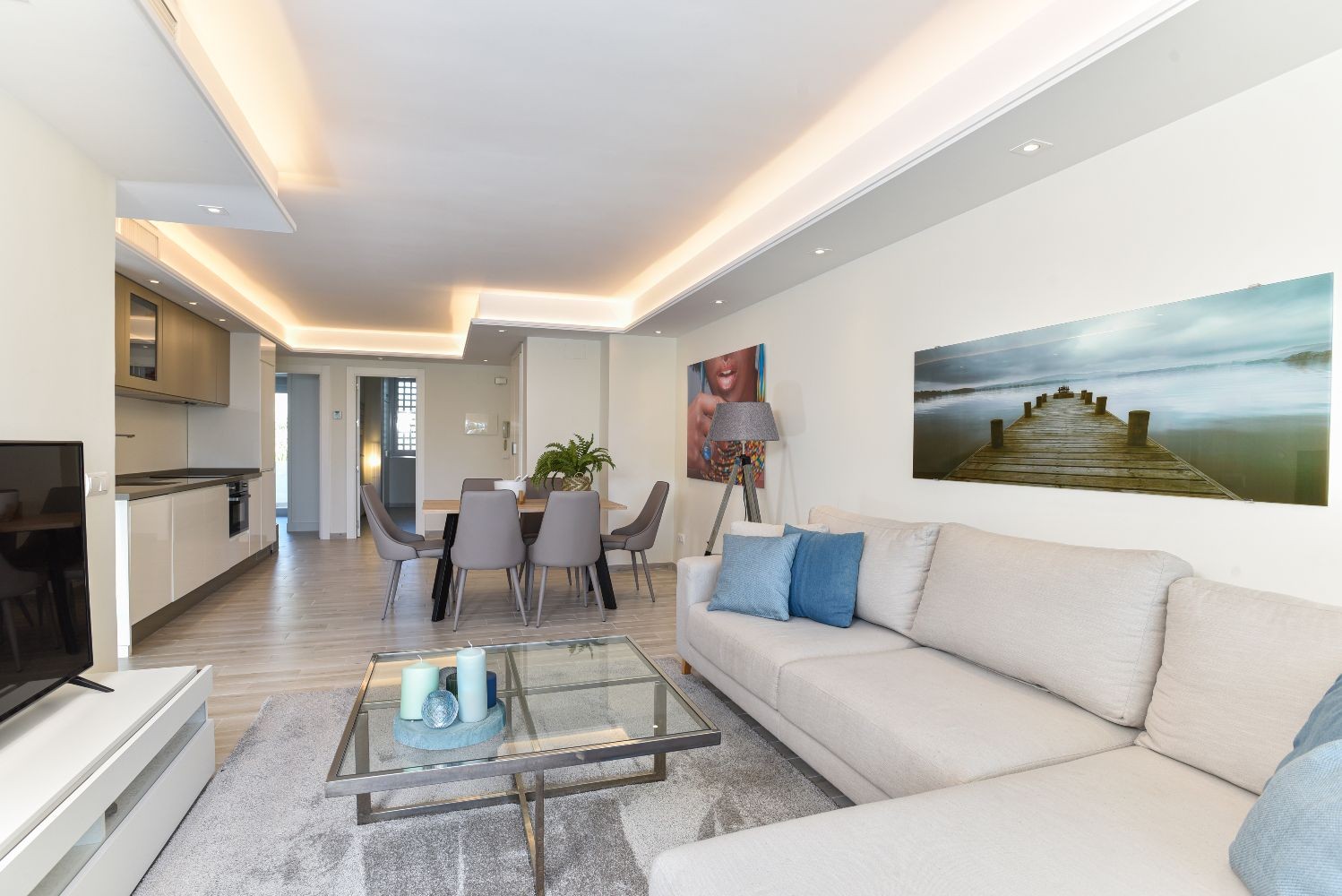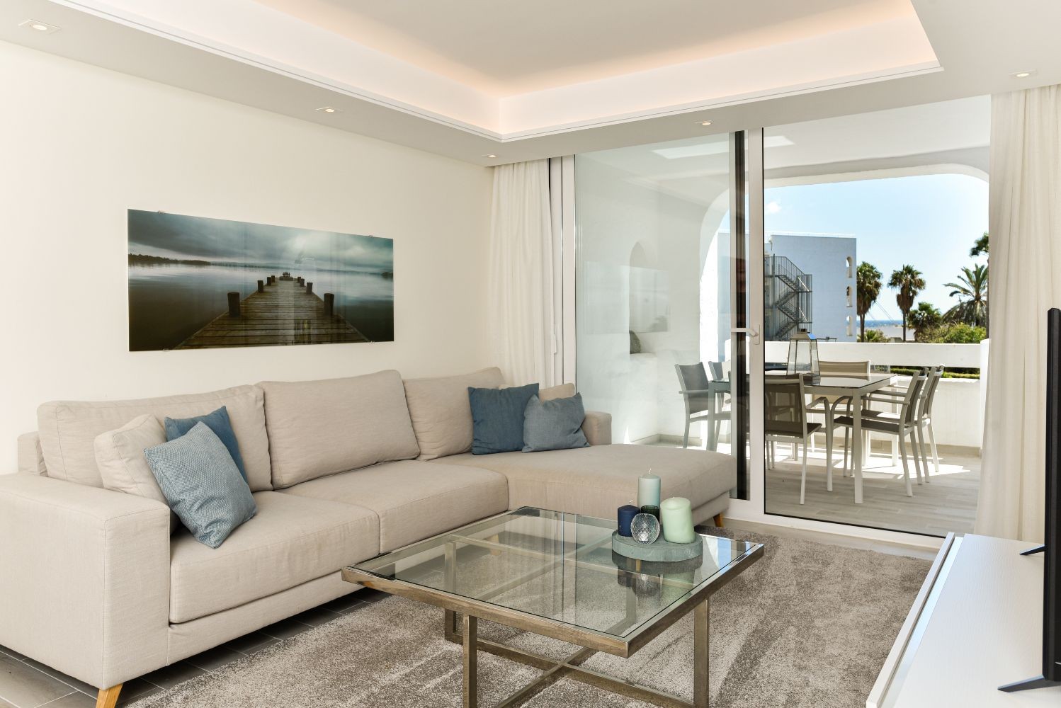 BEACHSIDE- Recently reformed three bedroom apartment just a short stroll to the beach and all amenities in Puerto Banus. The gated complex enjoys of 36 apartments, boasting twenty-four hour security & concierge service, a large communal pool, restaurant in-site, spa facilities and games room for children. This South-East facing and bright apartment is distributed as; Entrance hall, living/dining area enjoying access to a covered terrace, fully fitted oplen plan kitchen, master bedroom with en-suite bathroom, two further guest bedrooms sharing one bathroom. There is an assigned underground parking space.