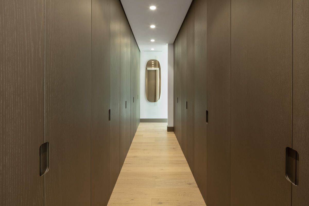 On the main level, we can find a stylish open-plan living area, with extraordinary floor-to-ceiling windows with unobstructed views to the manicured garden, a spacious dining area and a modern fully fitted Gunni & Trentino kitchen with Miele appliances. The living room has direct access to the covered terrace with chill-out areas, Bali-style pool and spectacular garden. On this level we can also find a generous guest bedroom en-suite.