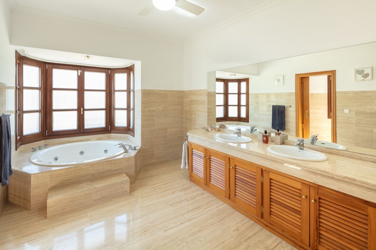 Upstairs, we find the third large guest bedroom with en-suite bathroom featuring a double basin, a full jacuzzi bath as well as a large standalone walk-in shower. The master bedroom suite is a real highlight , being very generously sized and featuring a walk-in dressing room as well as a very large bathroom with double basin, jacuzzi bath and walk-in shower.