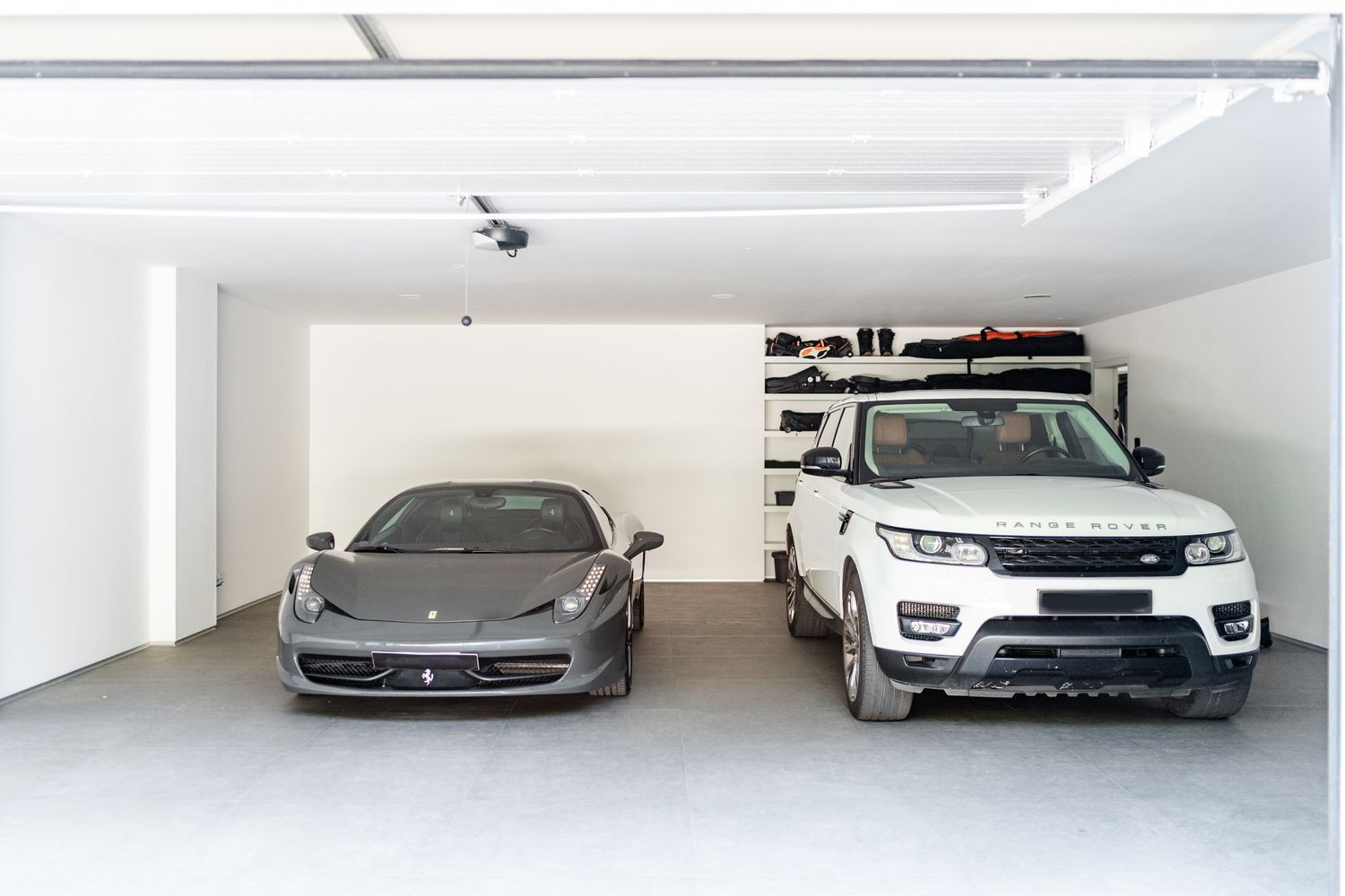 The basement has natural light all around and is much more than a basement. The most impressive feature is a huge multifunction room with full equipped gym, games room, cinema, kitchen, and office all in one open plan modern space with direct access to garden and patios. Two-bedroom suites with independent access and windows floor to ceiling, also access the same garden area. The garage is very spacious with lots of space for maneuver and more outside parking. The laundry has natural light and its own terrace. There is also a sixth bedroom on this floor that is planned for staff or can be accommodated for guests.