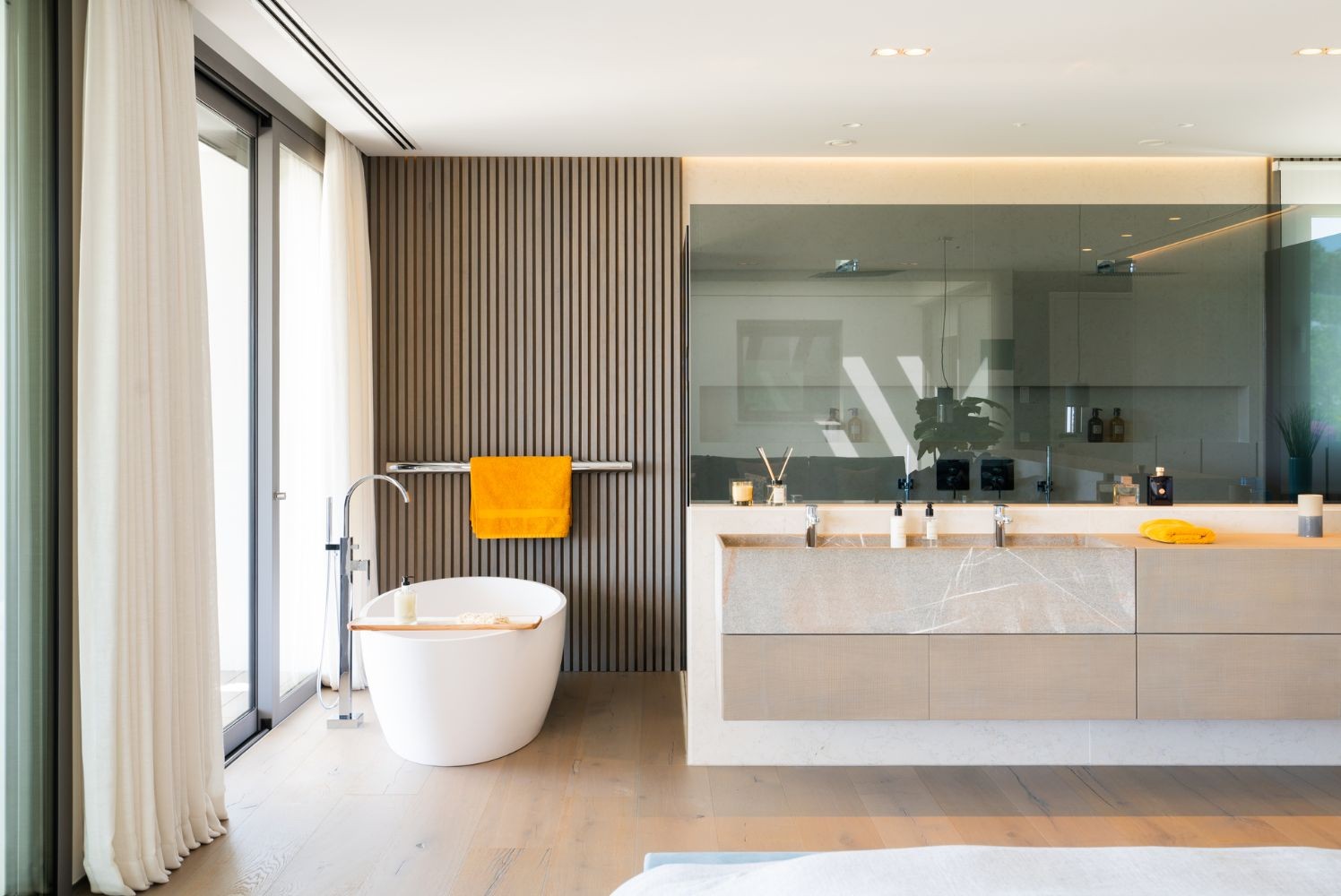 Not a single detail has been missed, any possible feature and extra has been already included for you to put your mind and soul at rest. The materials used to create a warm and welcoming home, where the off-white and grey tones come to force together with the architecture and water elements.