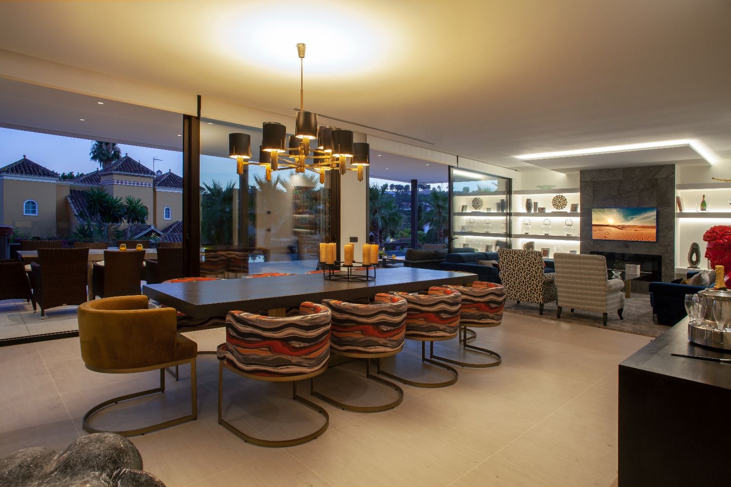 Fantastic contemporary villa with mountain views in Parcelas del Golf, a private and secure residential area in the Golf Valley of Nueva Andalucía. Distributed on three levels, this luxury villa offers spacious interior spaces bathed in natural light extended by huge terraces leading to a large swimming pool and superb Mediterranean gardens, an ultramodern kitchen fully equipped with high-end Balay appliances, 7 bedrooms, 6 bathrooms, one of the bedrooms with two windows overlooking the lower level with a view of the cars. Lift to all levels, 200-m2 solarium, BBQ area, Jacuzzi, rare stone construction from Portugal and outdoor parking for 5 cars. A sublime property in an exceptional setting only 5 minutes’ drive to Puerto Banús, the beach and all amenities.