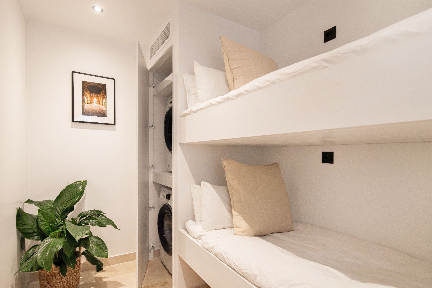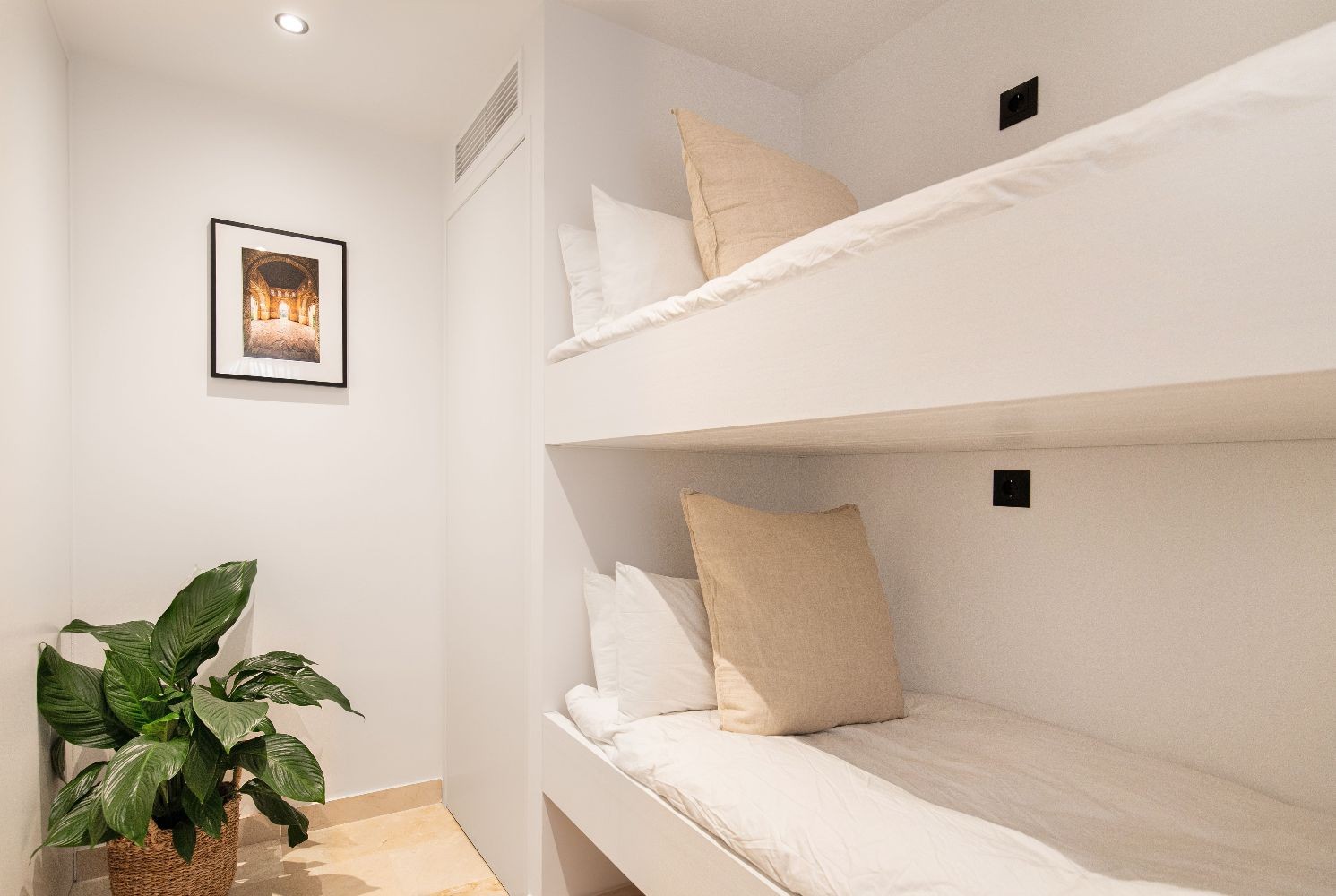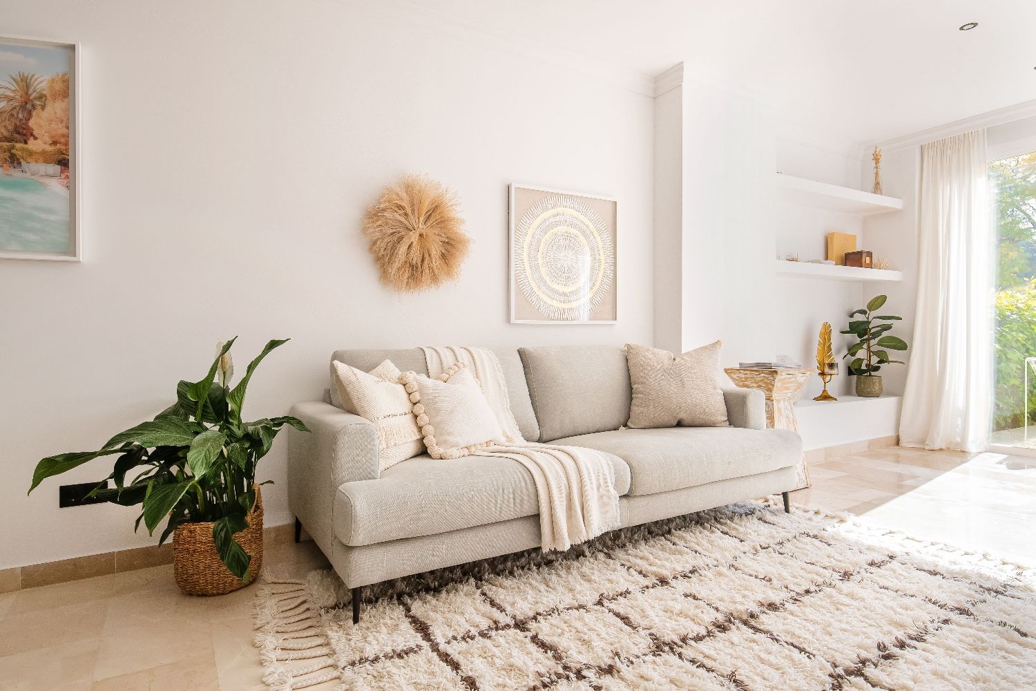 Welcome to this renovated light and bright west facing apartment f or sale on the f rontline golf in La Quinta. The apartment has 3 bedrooms, 2 bathrooms, an open plan kitchen- living-dining room which leads onto a terrace and garden area overlooking the golf course, the property has been renovated to the highest standards, where every little detail has been thought about, creating a real home.