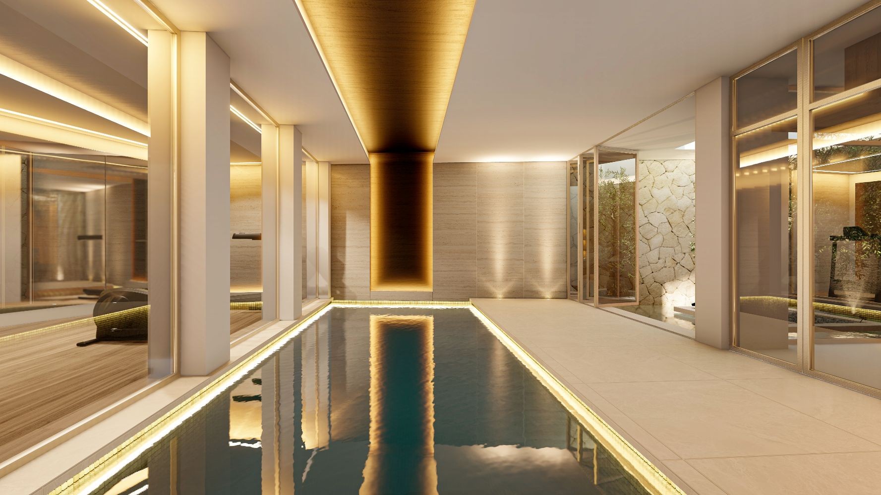 It features an open plan concept, designed for quality modern living and optimal comfort. Distributed over 3 levels, the villa enjoys over 1,000 m2 of pure luxury, with generous living spaces and bedrooms, designer kitchen with top quality Gaggenau appliances, entertainment and wellness spaces that include cinema room, state-of-the-art SPA with indoor pool, sauna, relaxing areas, and gym.