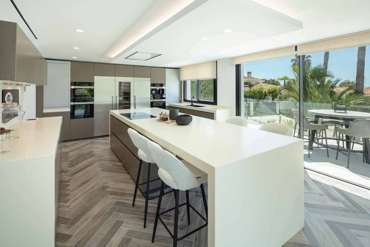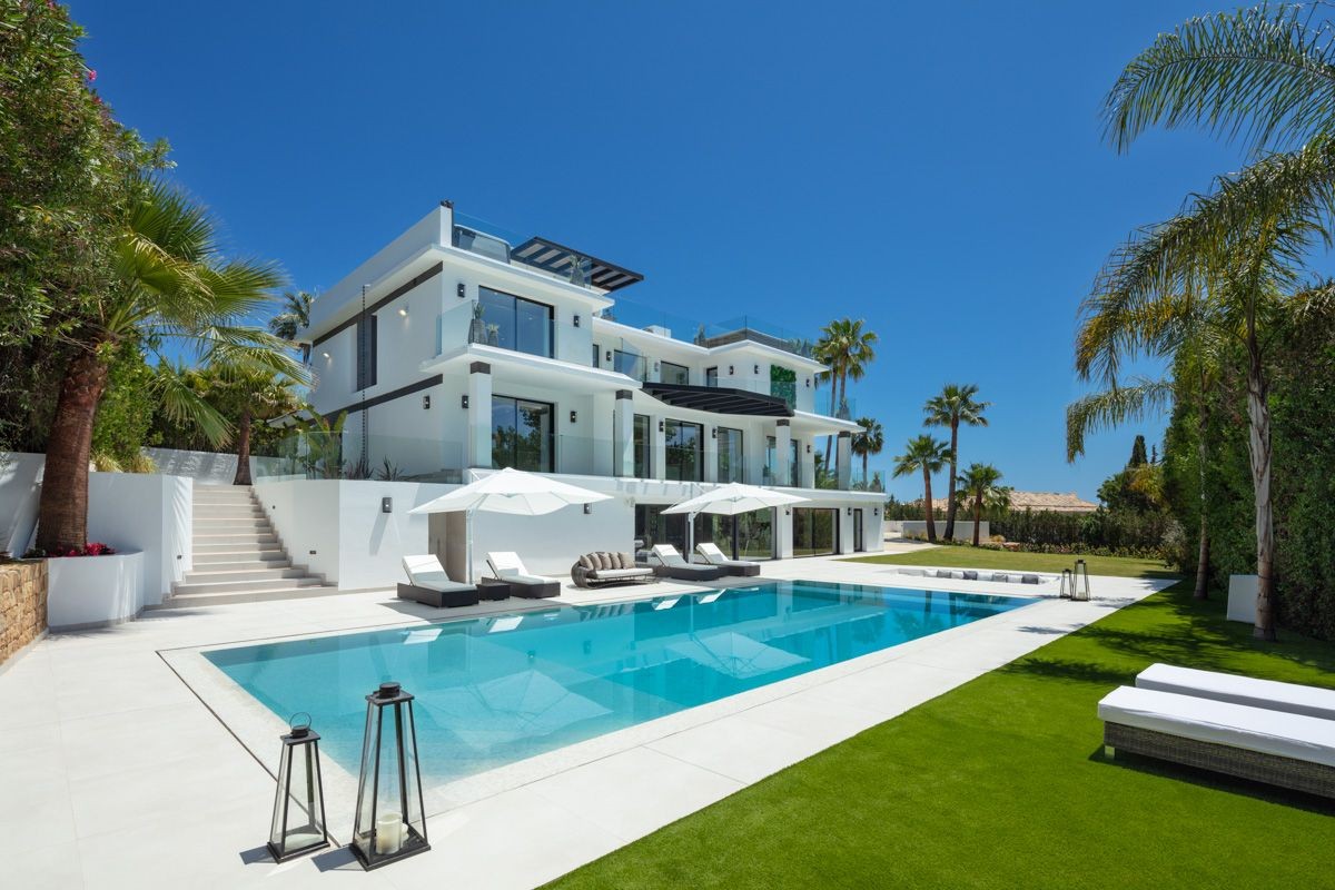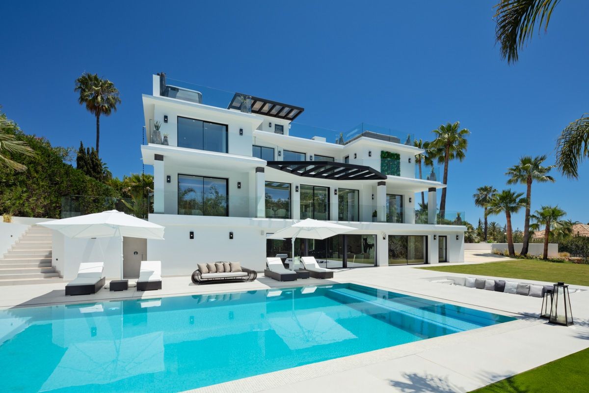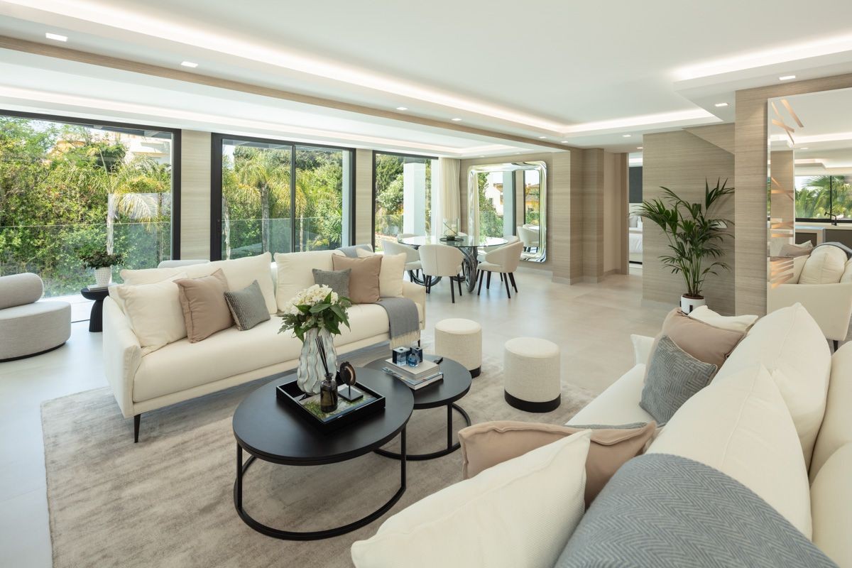 Situated on a quiet cul-de-sac just above the prestigious Golden Mile strip, this architectural home provides an outstanding setting for entertaining and daily living. Nagüeles is a quiet residential community located in one of the most sought-after areas of the Golden Mile, offering exclusivity and tranquility within a privileged location between the centre of Marbella and Puerto Banús, and only 5 minutes from the beach. Luxurious 5-star amenities nearby include Puente Romano Hotel, Marbella Club Hotel and a plethora of high-class dining and bar experiences.