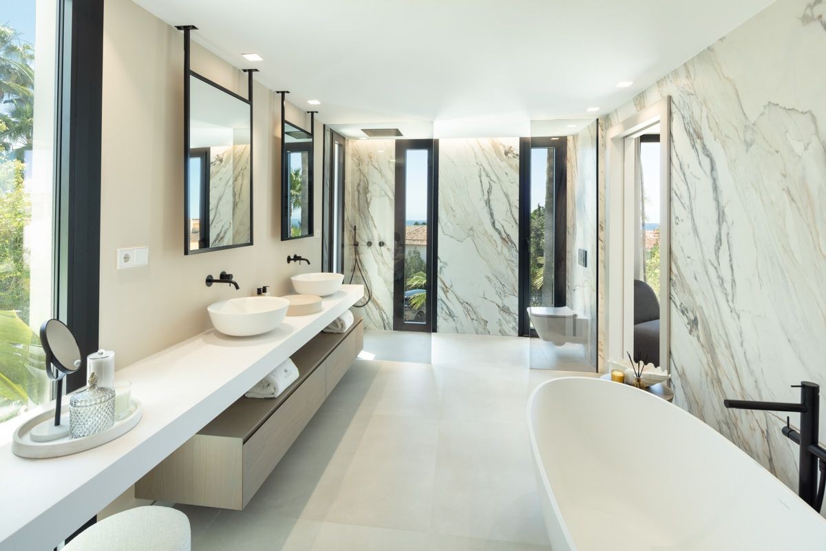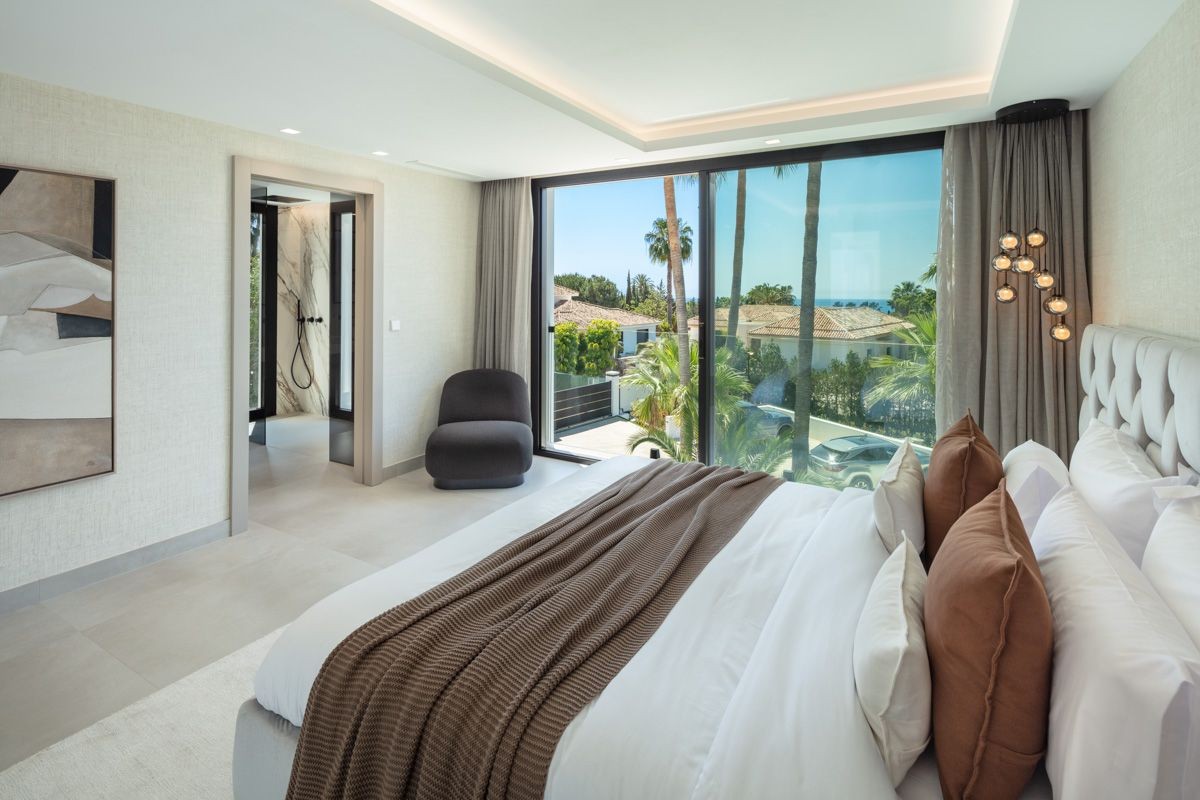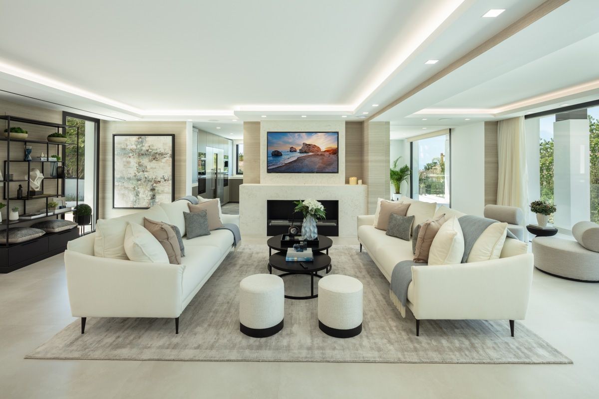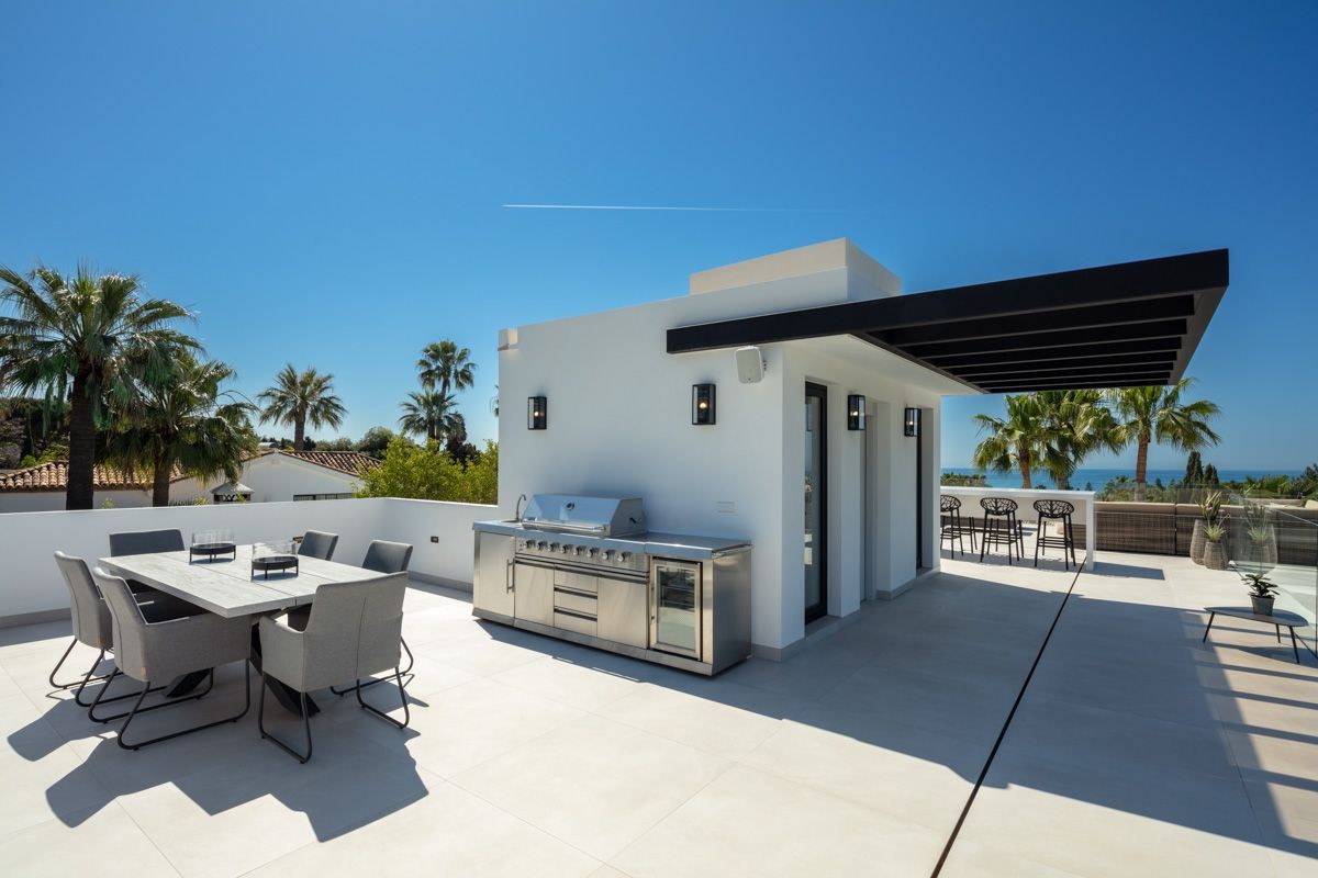 Situated on a quiet cul-de-sac just above the prestigious Golden Mile strip, this architectural home provides an outstanding setting for entertaining and daily living. Nagüeles is a quiet residential community located in one of the most sought-after areas of the Golden Mile, offering exclusivity and tranquility within a privileged location between the centre of Marbella and Puerto Banús, and only 5 minutes from the beach. Luxurious 5-star amenities nearby include Puente Romano Hotel, Marbella Club Hotel and a plethora of high-class dining and bar experiences.