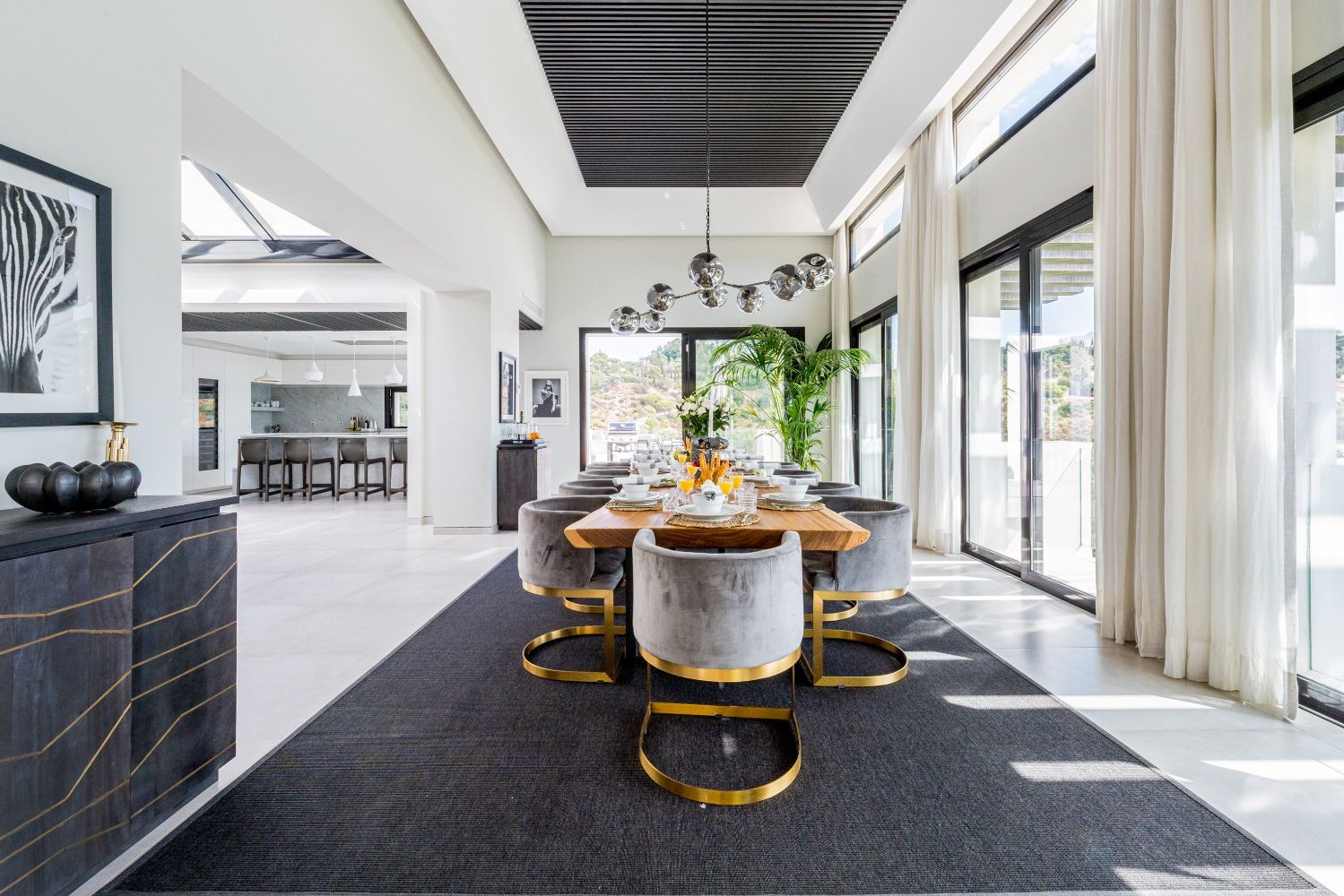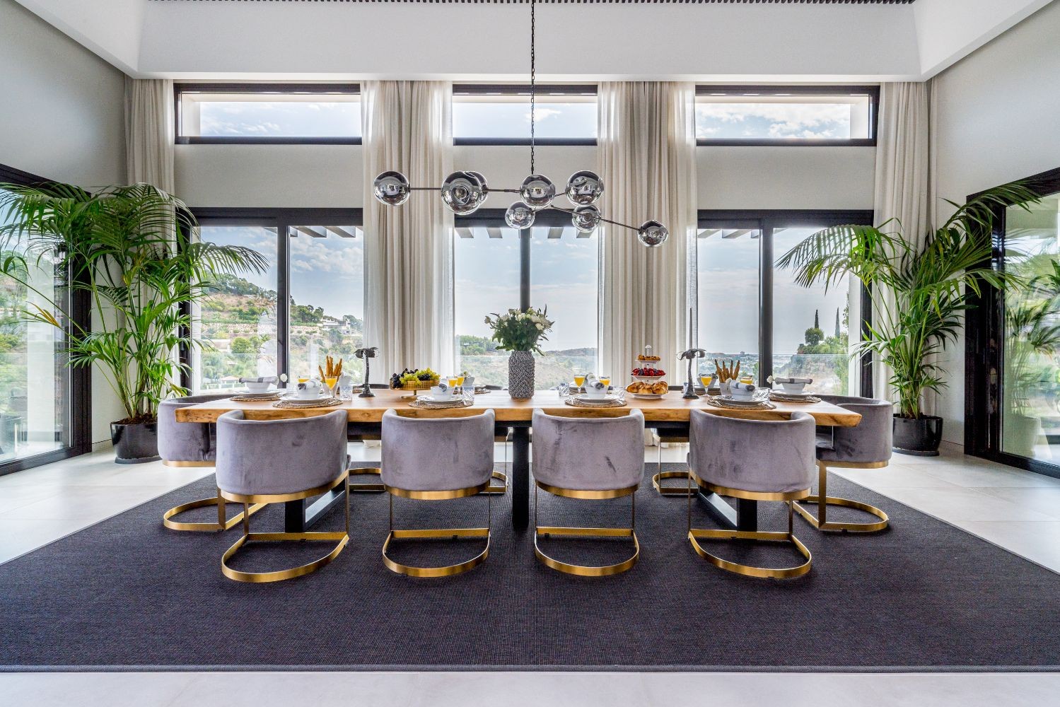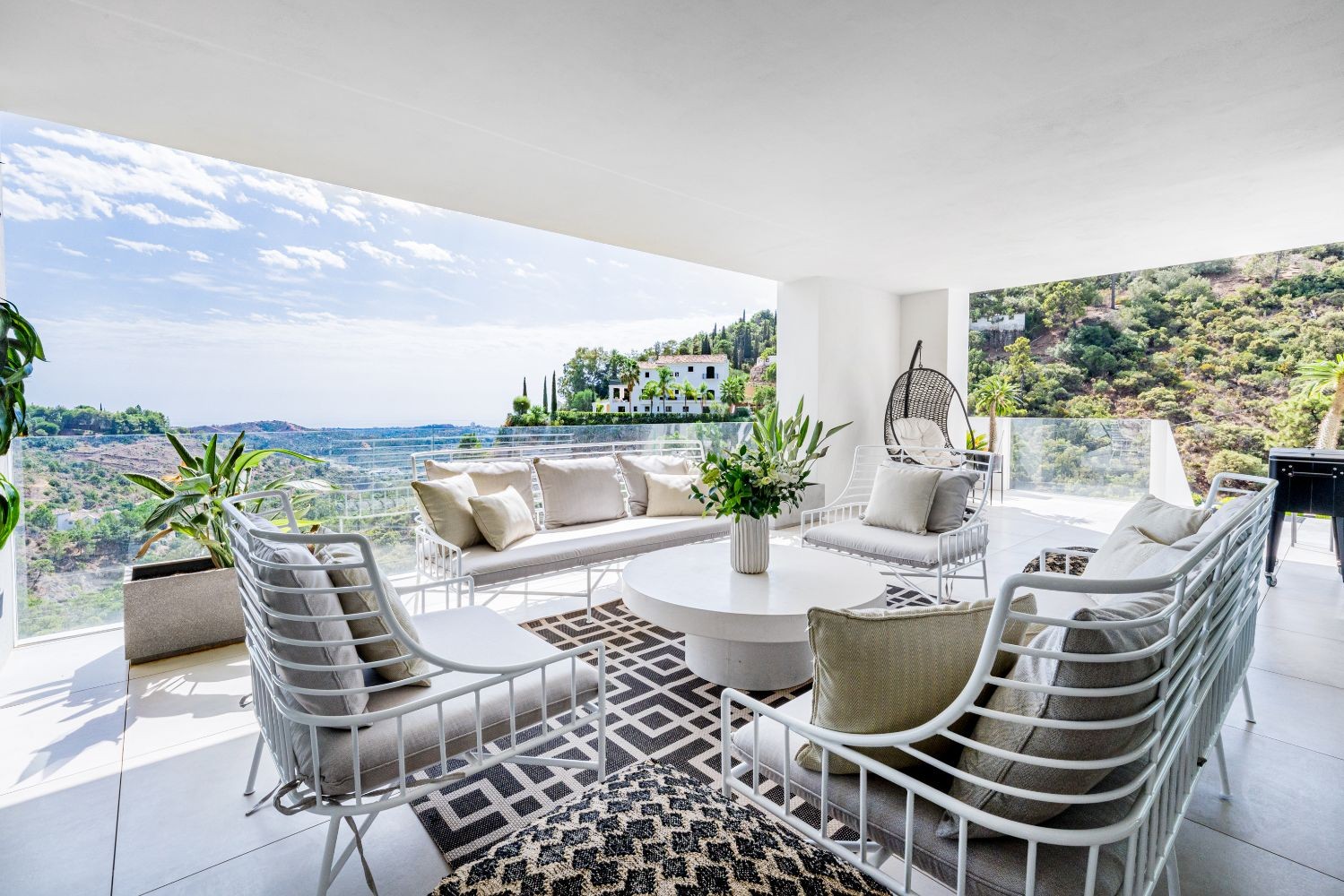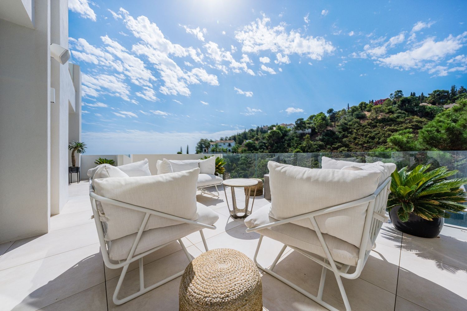 Spectacular house situated in the cozy hillside of El Madroñal. The house benefits from its elevated position and offers amazing sea views. The ground floor comprises of a big hall, two living rooms, a spectacular dining room and a beautiful contemporary kitchen. On the lower level, there are three good sized bedrooms, a gym, laundry room and spa.