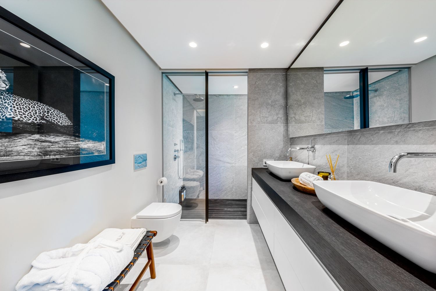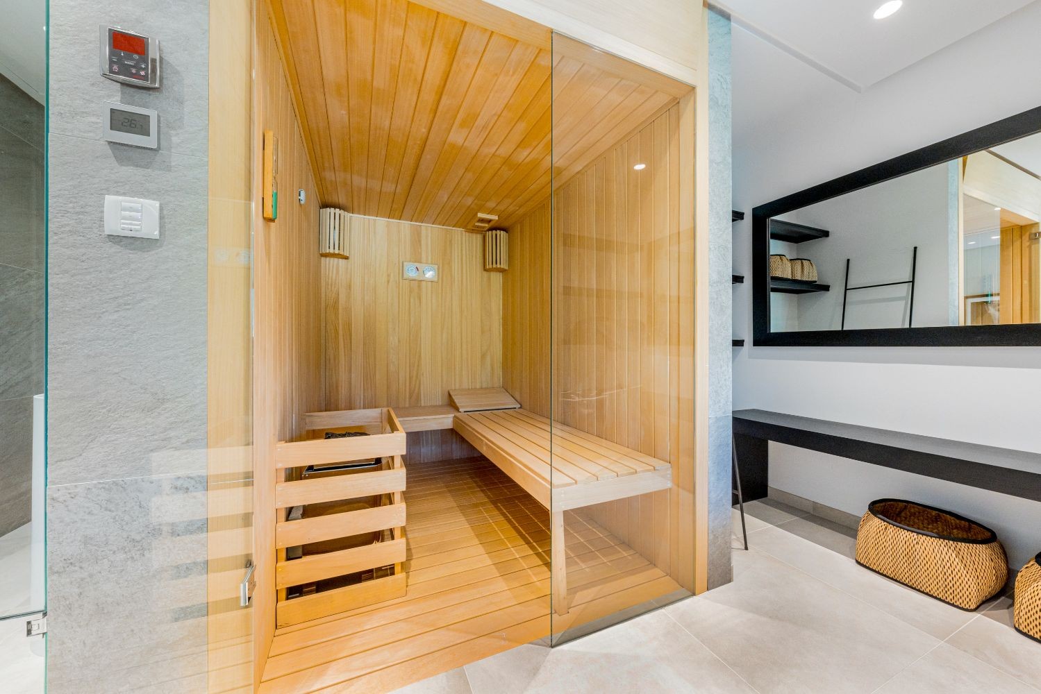 All the bedrooms have beautiful sea views, floor to ceiling windows, direct access to the garden and an en-suite bathroom. The 1st floor consists of a breathtaking master suite, with a big walk-in closet, private terrace with amazing views and a lavish master bathroom.