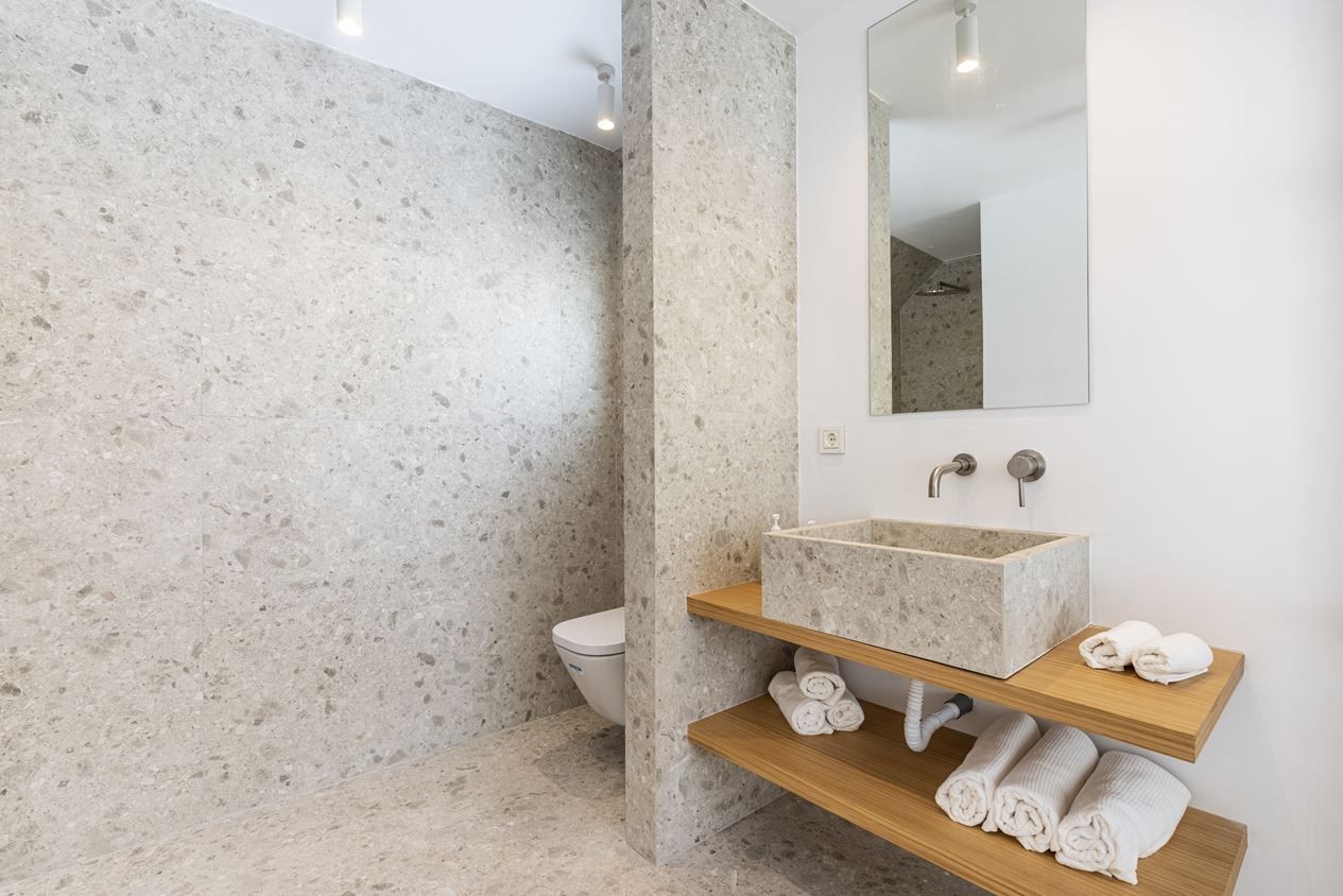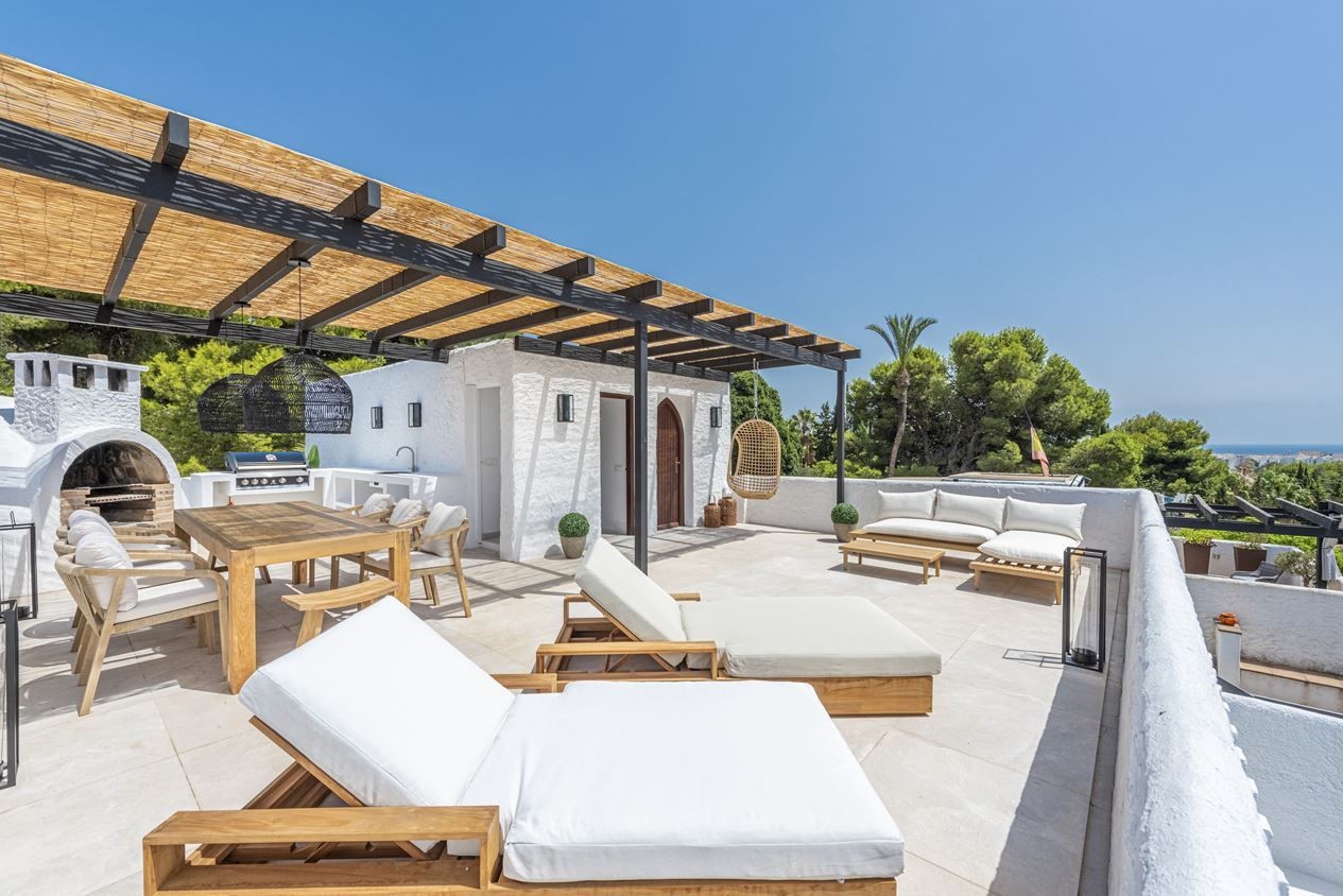 On the first floor we have a bespoke kitchen and open-plan living room, master bedroom on-suite and the 3rd bedroom. On this floor there is also a smaller terrace facing west. Half a floor up is the second bedroom and guest toilet, from here we reach the fantastic roof terrace where you will find an outdoor kitchen complete with bbq, charcoal grill / oven, plenty of space for family and friends as well as views of the entire sea, golf valley and mountain la concha.