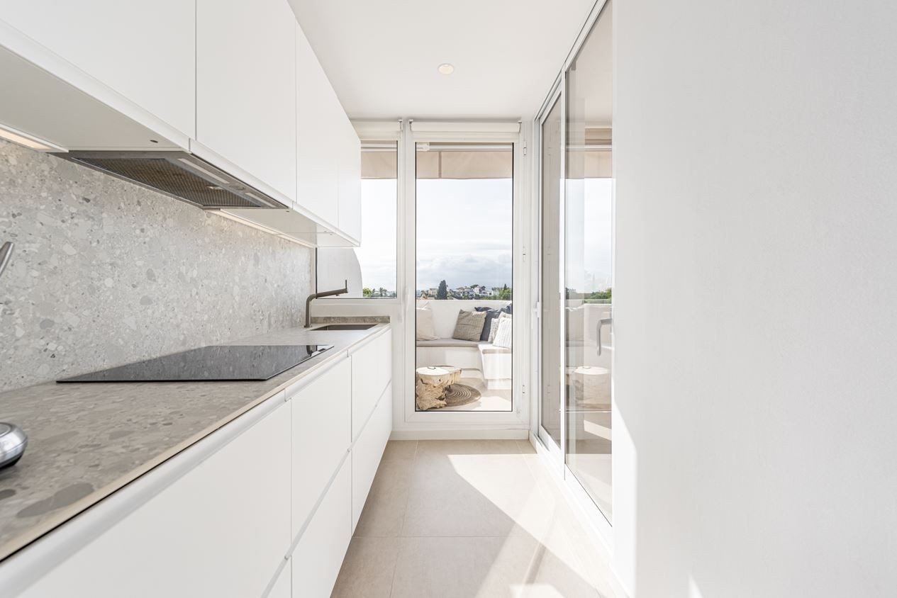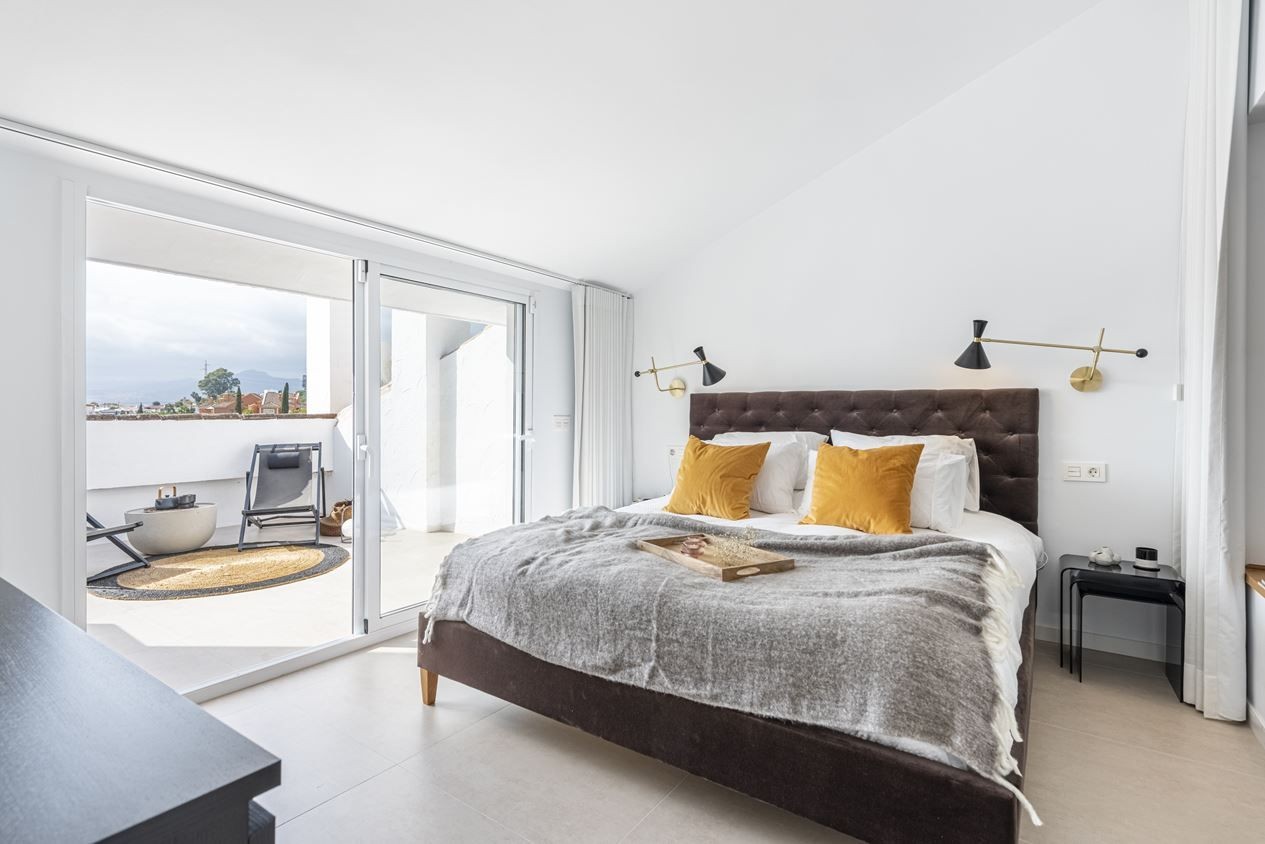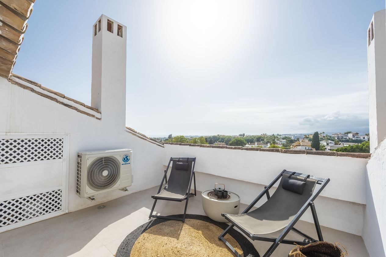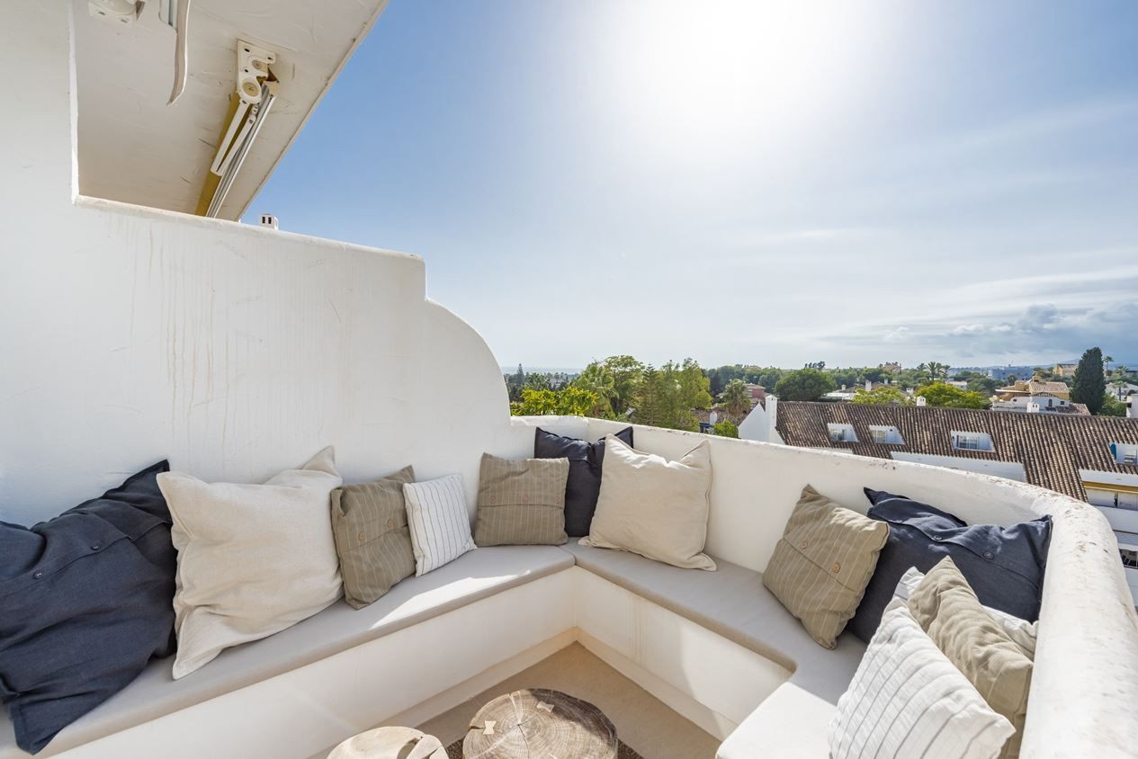 Renovated west facing penthouse in nueva andalucia within walking distance to centro plaza. Renovated to a high standard with a touch of the little extra. Incomparable view of both sea and mountains.