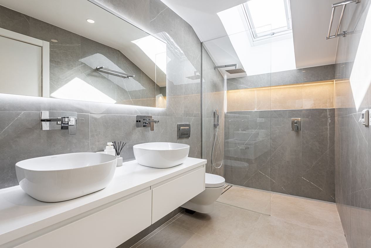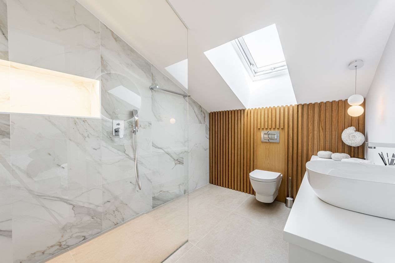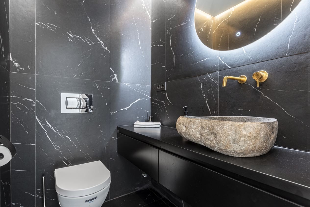 On the entrance level, we have the social areas consisting of an open-plan living room / kitchen, a terrace with a wonderful view, a guest toilet and 1 of the three bedrooms. On the upper floor, we have 2 very tasteful en-suite bedrooms, the master of which has its own private terrace with spectacular views.