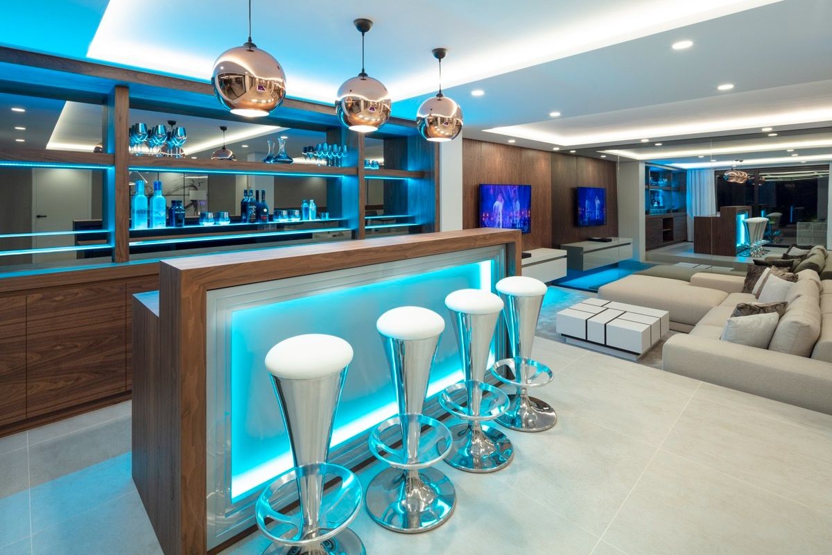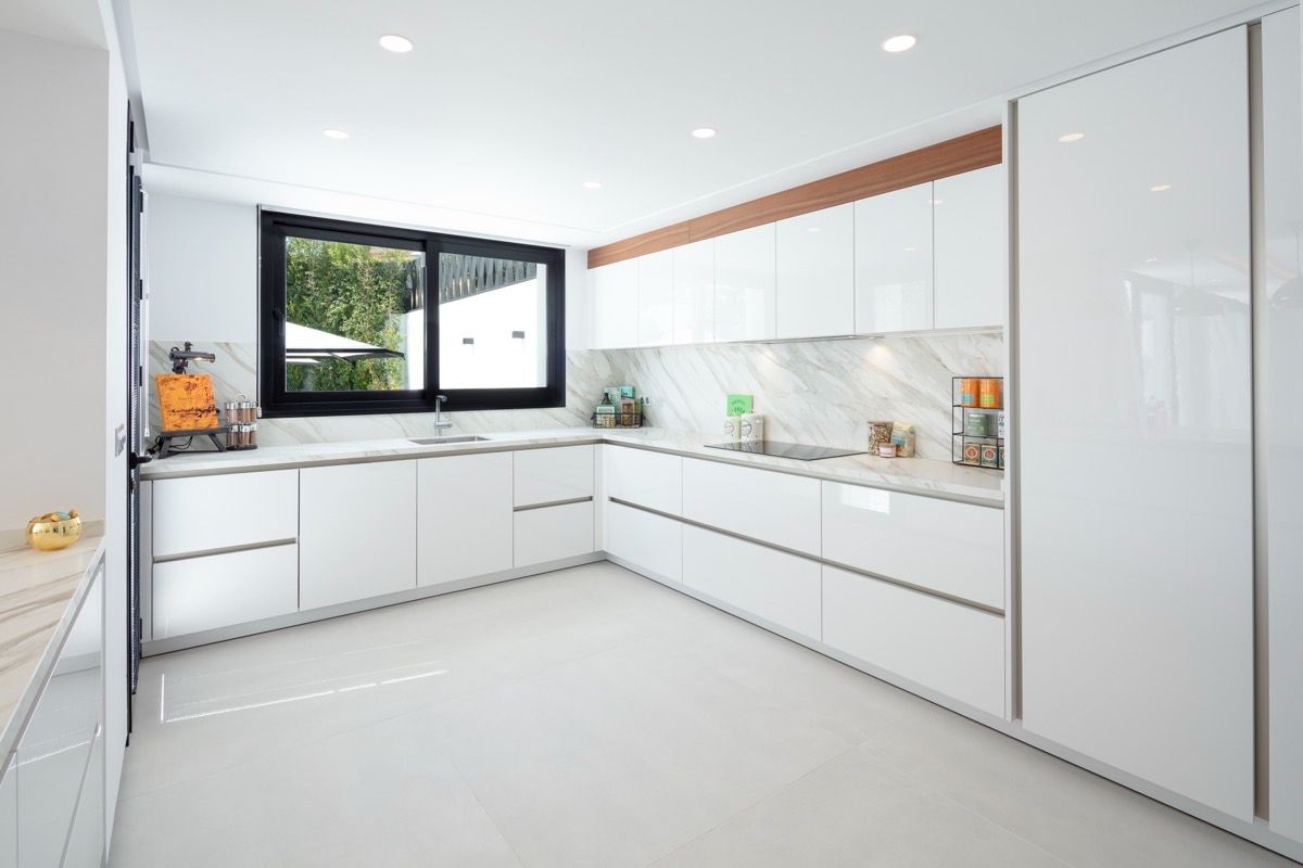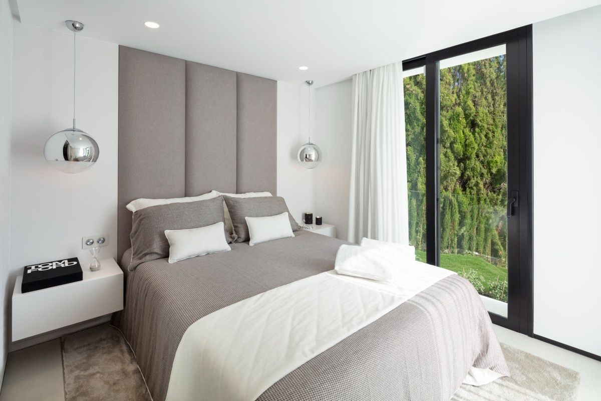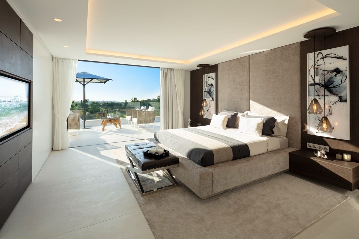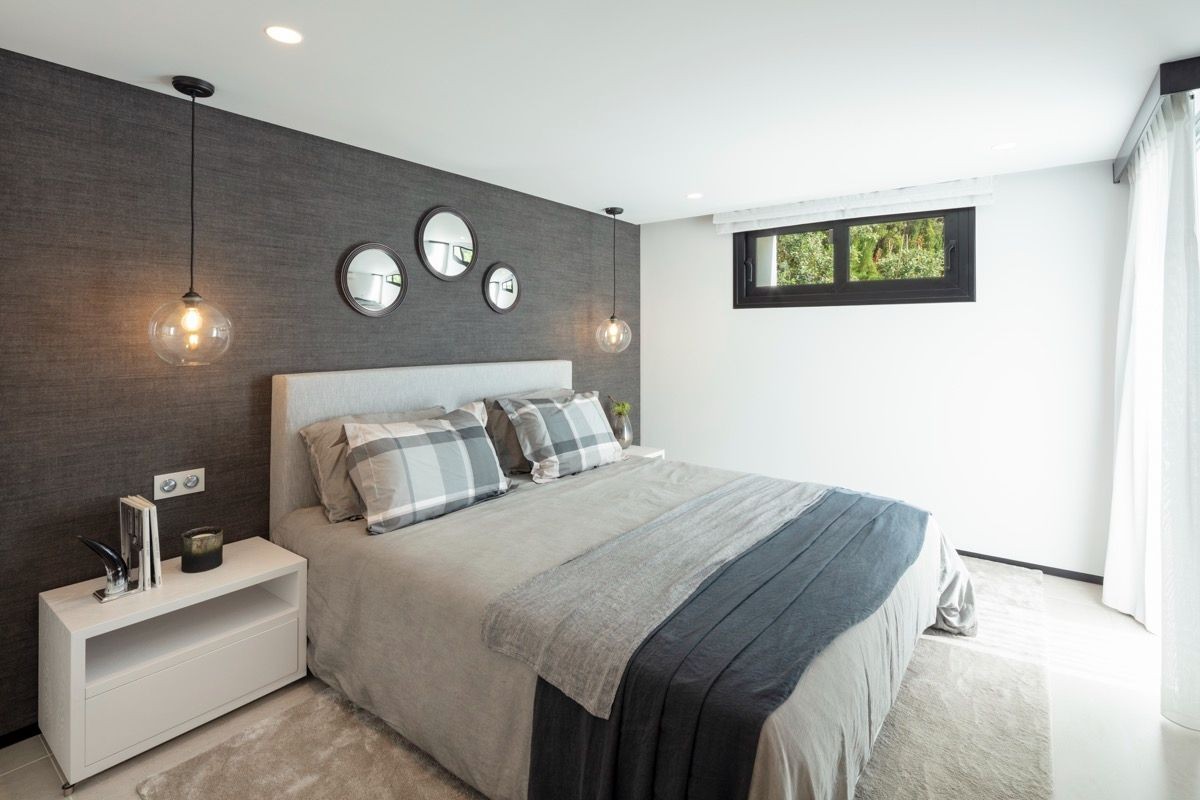 A stunning contemporary villa, residing in the heart of the Golf valley within walking distance to Los Naranjos golf course. A modern and personality infused property, just minutes from 5-Star amenities. The villa is exquisitely furnished and decorated, offering a sensational lifestyle, built with high quality specifications, and its prime location makes this property an ideal home to have in Marbella. Set in a quiet and private street, the villa overlooks the tropical views and the manicured garden, swimming pool area ensuring a peaceful atmosphere to relax and enjoy the amazing weather Marbella offers. The villa welcomes you into an elegant open-plan living room, furnished and decorated with attention to details. This open space enjoys floor-to-ceiling windows that allow plenty of natural light that blends to perfection with the neutral color palette of the furniture. The living room, dining area and kitchen have all access to the expansive covered terrace and manicured garden. The dining area leads to an exquisite custom-made gourmet kitchen, finished to the highest qualities and with high-end appliances. The kitchen overlooks the tropical garden and private swimming pool of the villa. The first floor consists entirely of the lavish master suite, a walk-in closet and complete en-suite bathroom. An expansive terrace wraps around the suite, with beautiful views towards the sea with a built-in gym station. The property also boasts a generous basement with a custom designed bar, lounge and game room and walk-in bodega. A truly stunning home located in one of Marbella’s best locations!