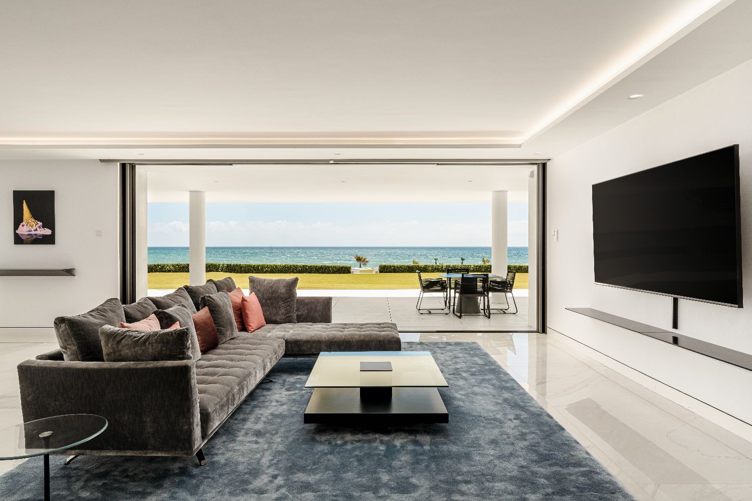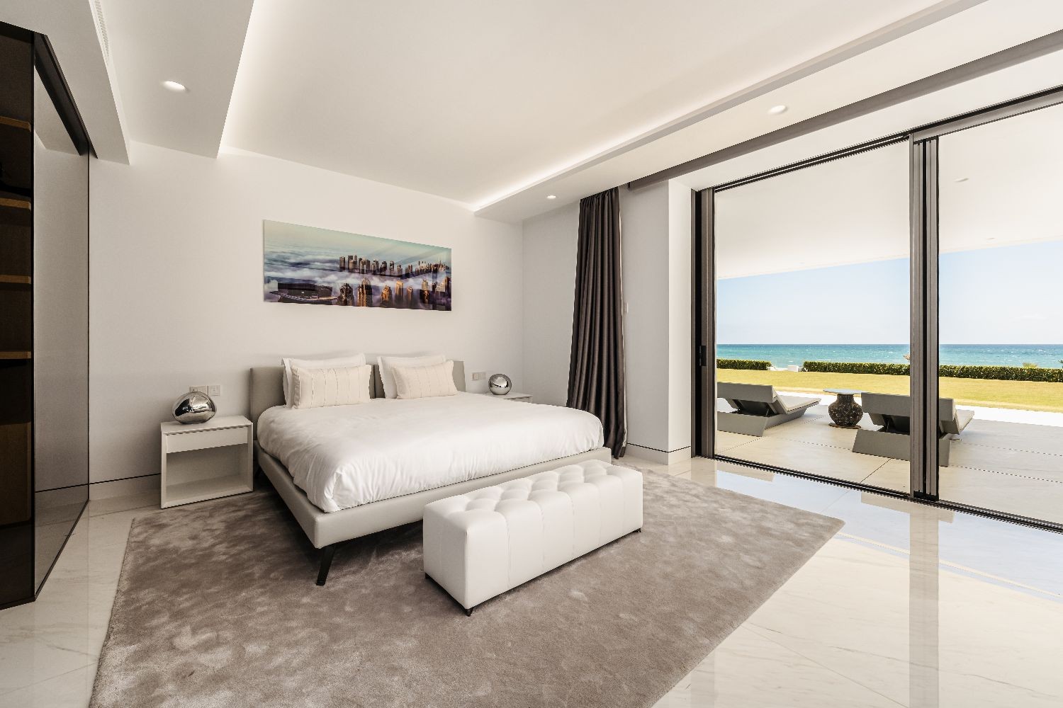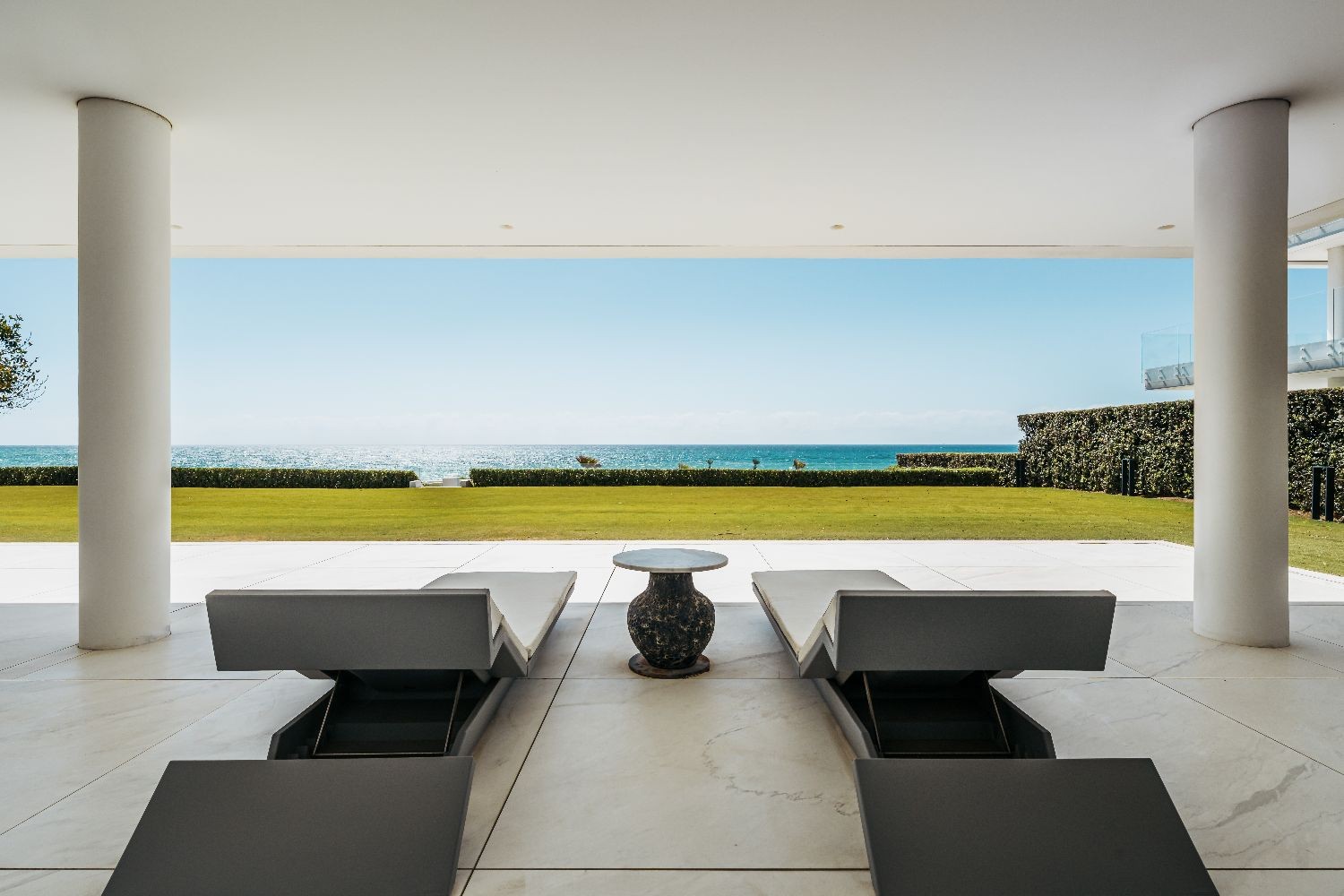 With a garden of 415 m², this incredible south-oriented property of 453 m² is perfectly equipped and flawlessly presented, combining open space innovative design with the highest quality materials and latest technologies. It hosts 4 stylish bedrooms with 4 en-suite luxurious bathrooms, a guest toilet, a cinema room, an open plan living room with a TV-salon, reception and dining areas and a sleek, fully-equipped designer kitchen with an island / breakfast area / bar. The living areas lead to the superb covered terraces of 146 m², ideal for the glorious Mediterranean lifestyle. The magnificent property boasts a wonderful lawn and the beach directly in front of it, which allow to enjoy a unique, effortlessly privileged living experience every day. Just imagine, you can reach the beach on foot in just one minute!