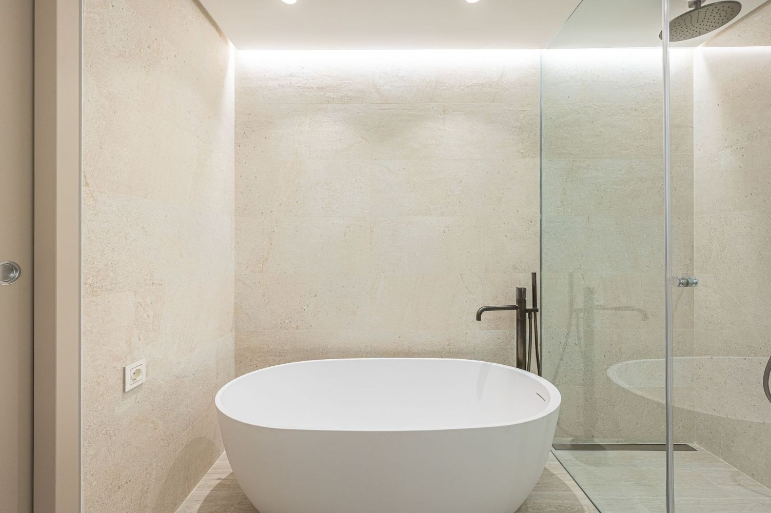 The terrace with down lighters creates the perfect entertaining area. With the iconic La Concha mountain as a backdrop, the Mediterranean only footsteps away, this is truly the idyllic setting!