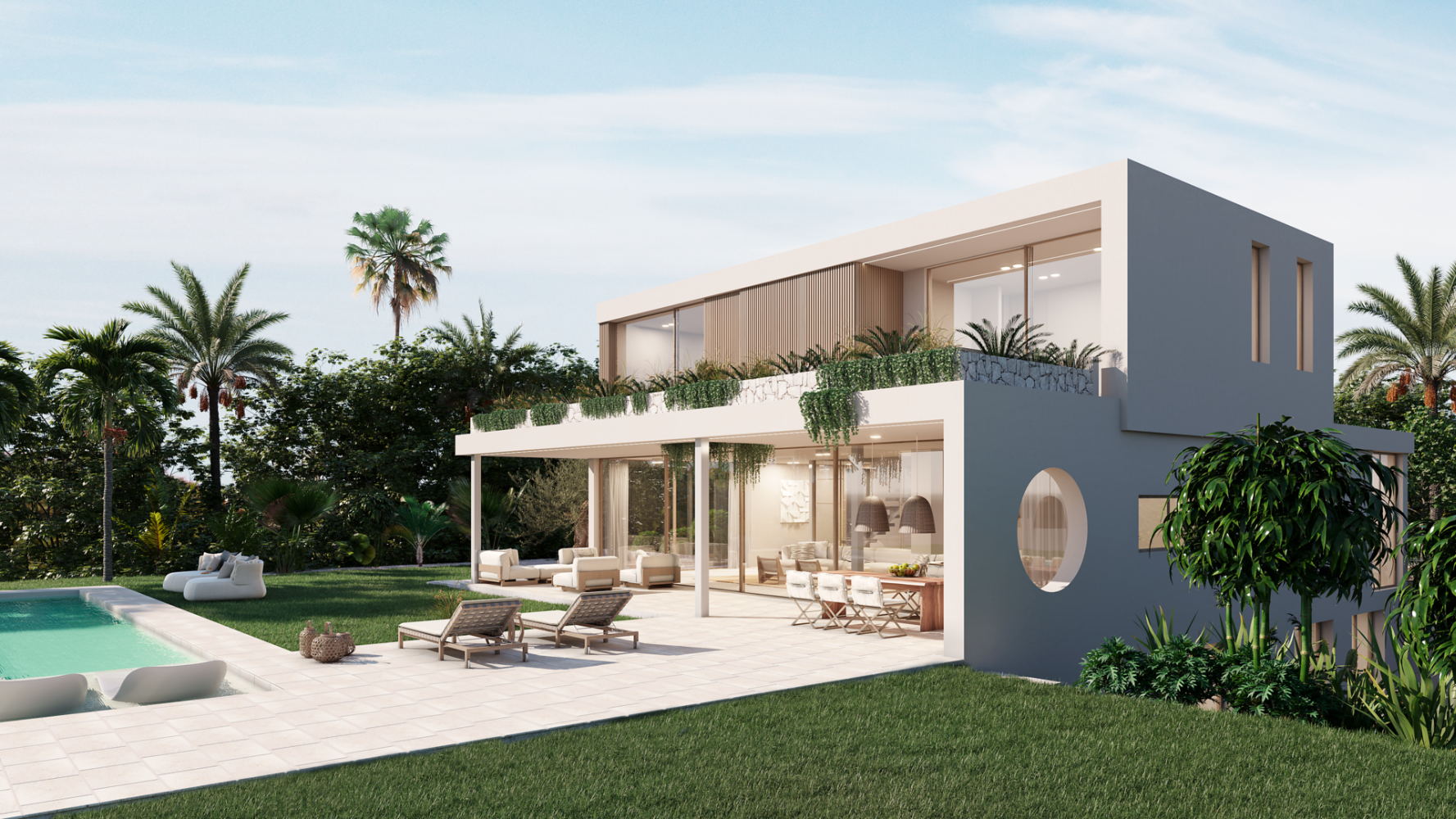 Impeccably designed with contemporary lines, the finest materials and attention to detail provide a warm and homely atmosphere to this 524 m2 villa set on a flat plot with golf and sea views.