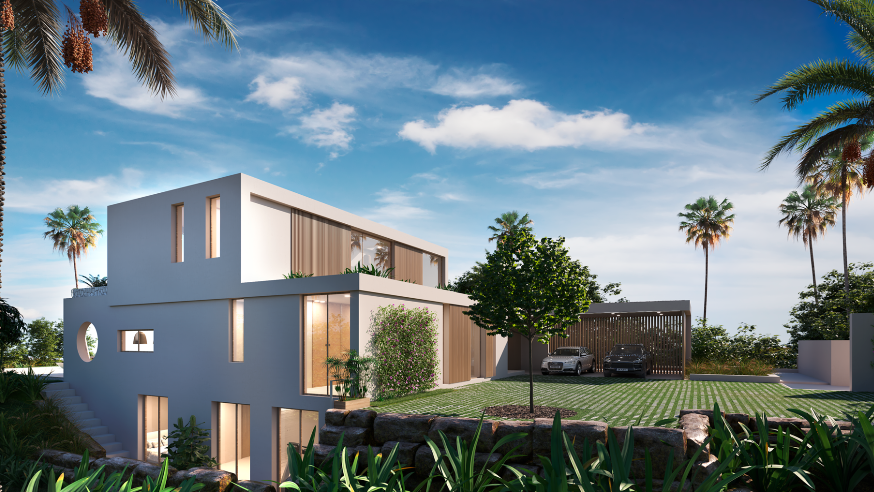 There is covered parking space for two cars at the entrance of the house.