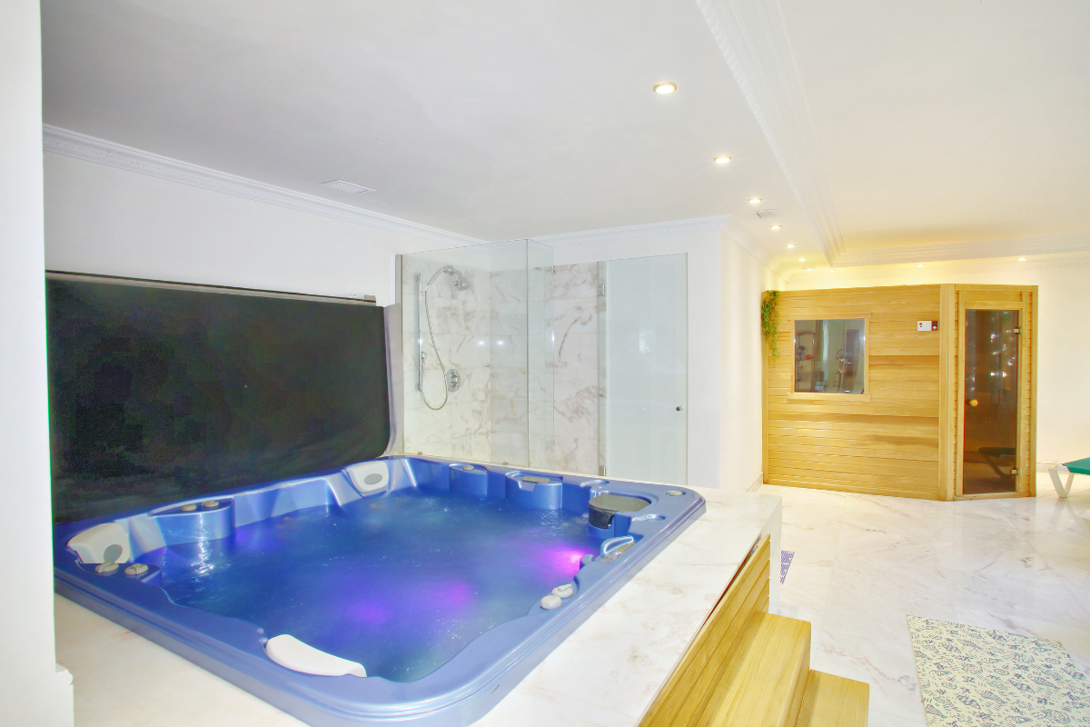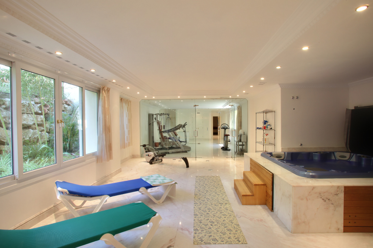 Villarroel designed villa with a €1.25 million renovation, including the development of the lower level to include an unbeatable private cinema and bar with 9 Italian leather recliner armchairs, private spa, and gym.