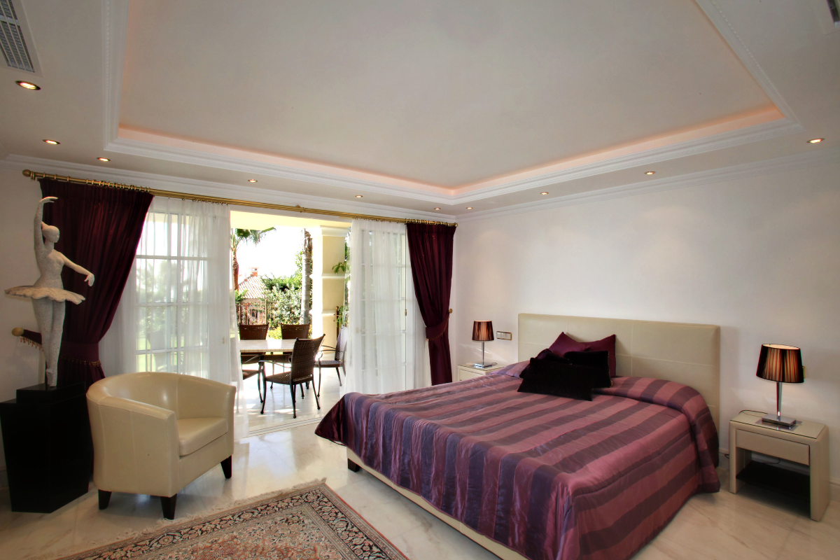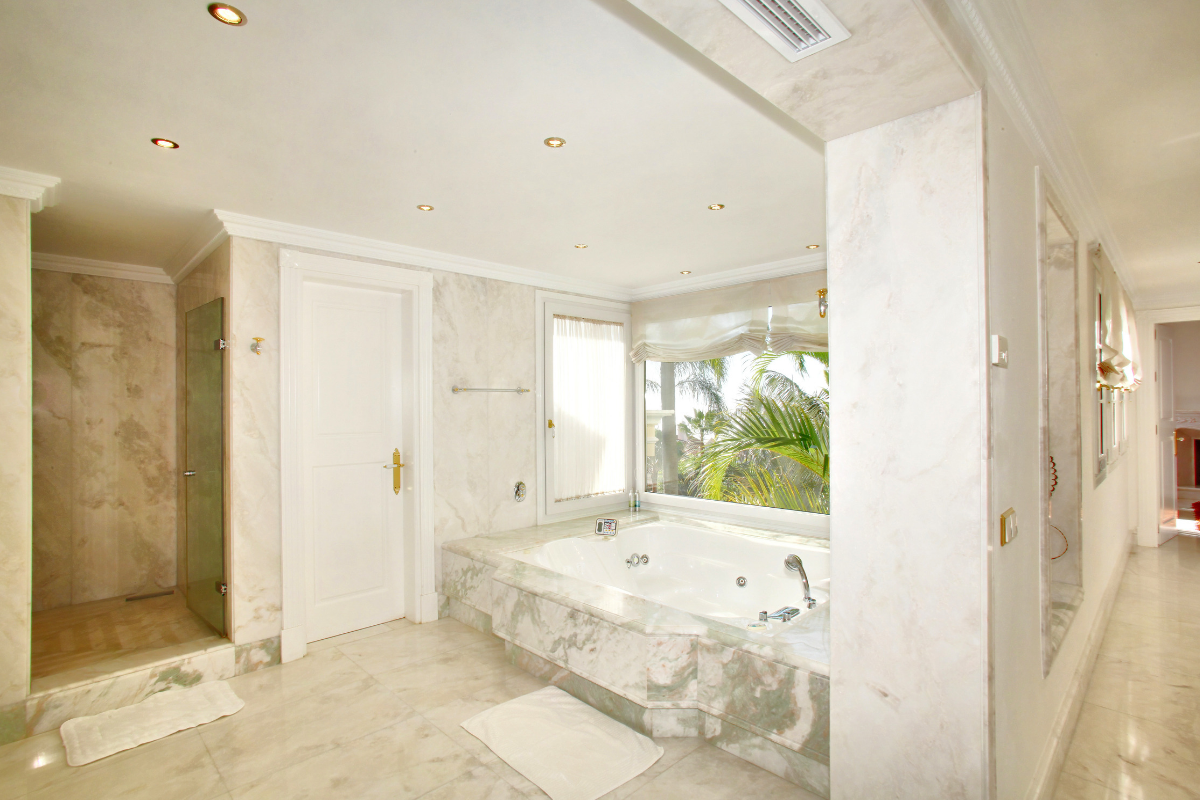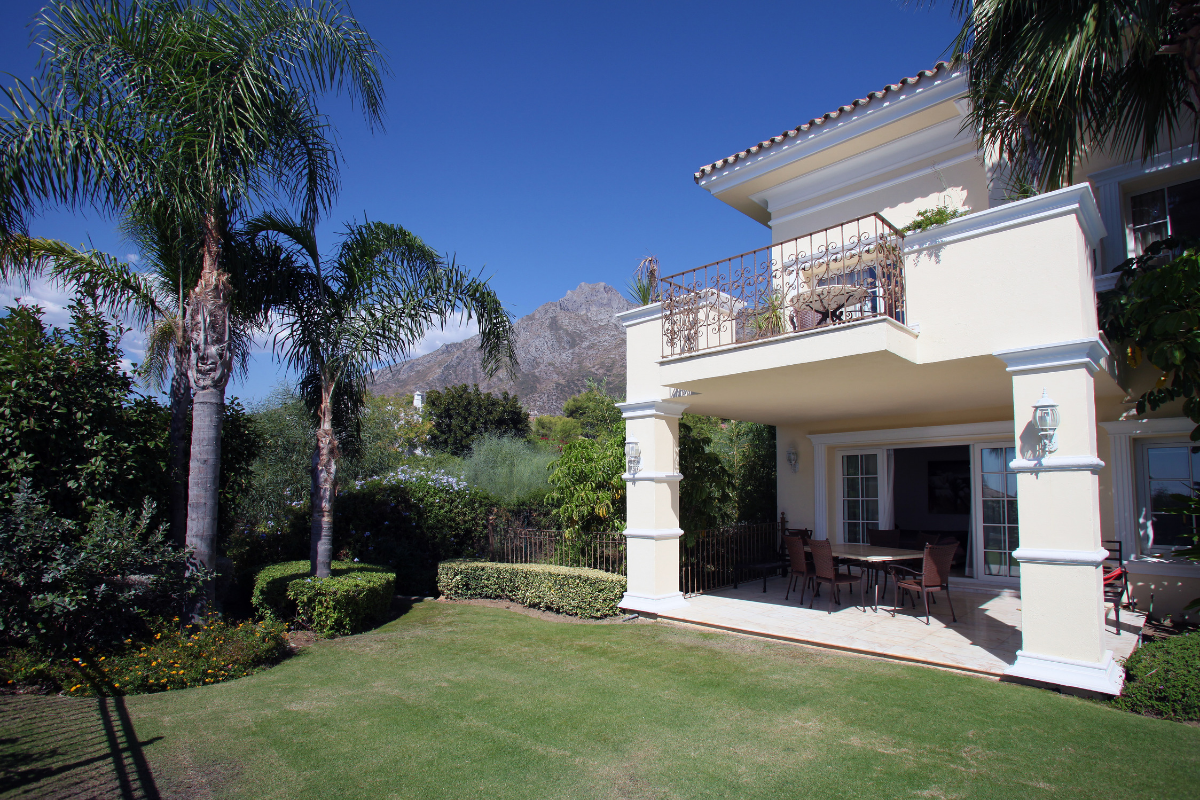 The lower level includes a 3 car garage with individual electric doors and easy road access, private spa with extra large Jacuzzi tub and Sauna, gym and large state-of-the-art cinema and bar, and another double bedroom suite. The easy to maintain garden is very private and offers a large heated swimming pool in a beautiful mature setting. All in all, this very stylish property offers first-class luxury qualities in Marbella´s most sought-after Golden Mile address. Sold fully furnished.