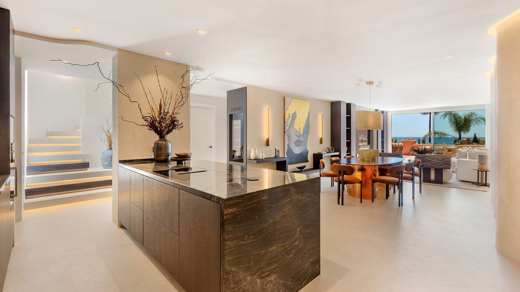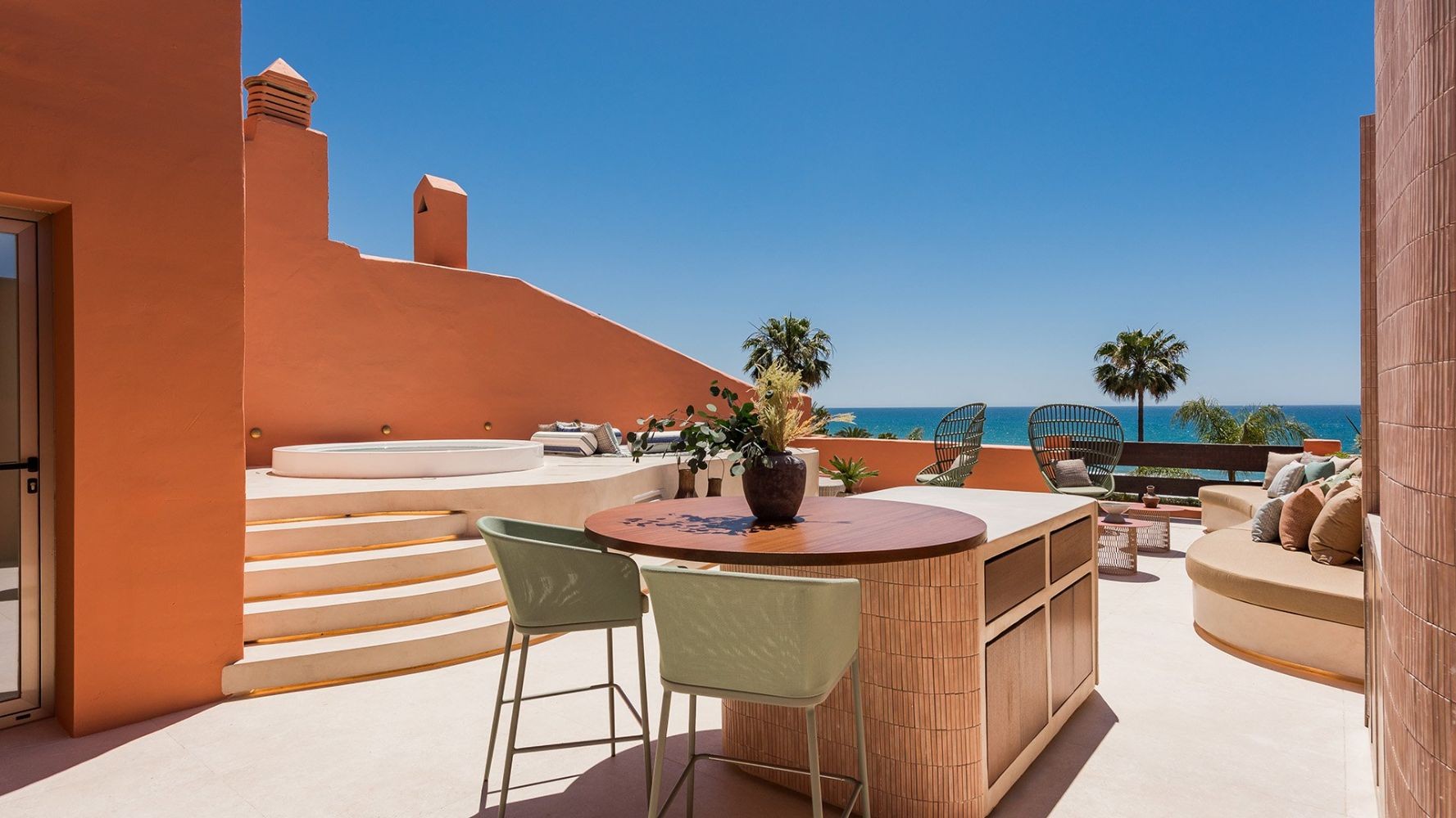 With more than 250 m2 of interior space, spacious open-plan distribution and spectacular sea and garden views, it is a rare opportunity in the current market. The apartment is equipped with elegant floors, a Siematic designer kitchen with Miele appliances, an electric fireplace, tailormade wardrobes, a Bang & Olufsen sound system, exclusive Kettal outdoor furniture and underfloor heating. It comes with two underground parking spaces and one storage room.