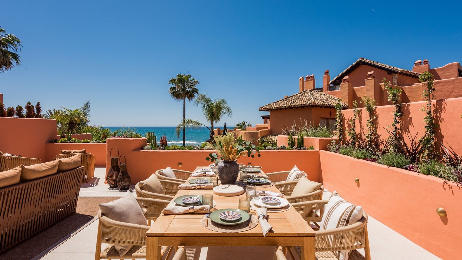 La Morera is an impressive frontline beach urbanisation which is located next to Marbella’s famous Los Monteros beach and just a few steps from the well-known beach restaurant Trocadero Arena. Designed by the famous Melvin Villarroel it combines timeless Mediterranean architecture with exclusive luxury. It offers 24 hours security, a pool, an indoor pool, a gym and a