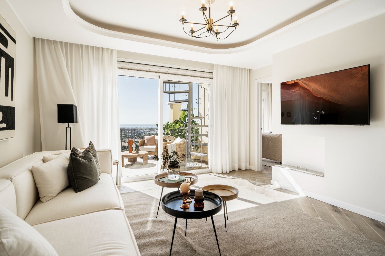 An immense terrace with a sea view. A solarium to soak up the Marbella sun. A balcony for enjoying coffee al fresco. The spaces in this penthouse in Benahavis are designed to maximise outdoor enjoyment on this coast that rarely sees clouds. It has been completely remodelled to ensure high-quality moments indoors, with a careful selection of materials and obsessive attention to detail.