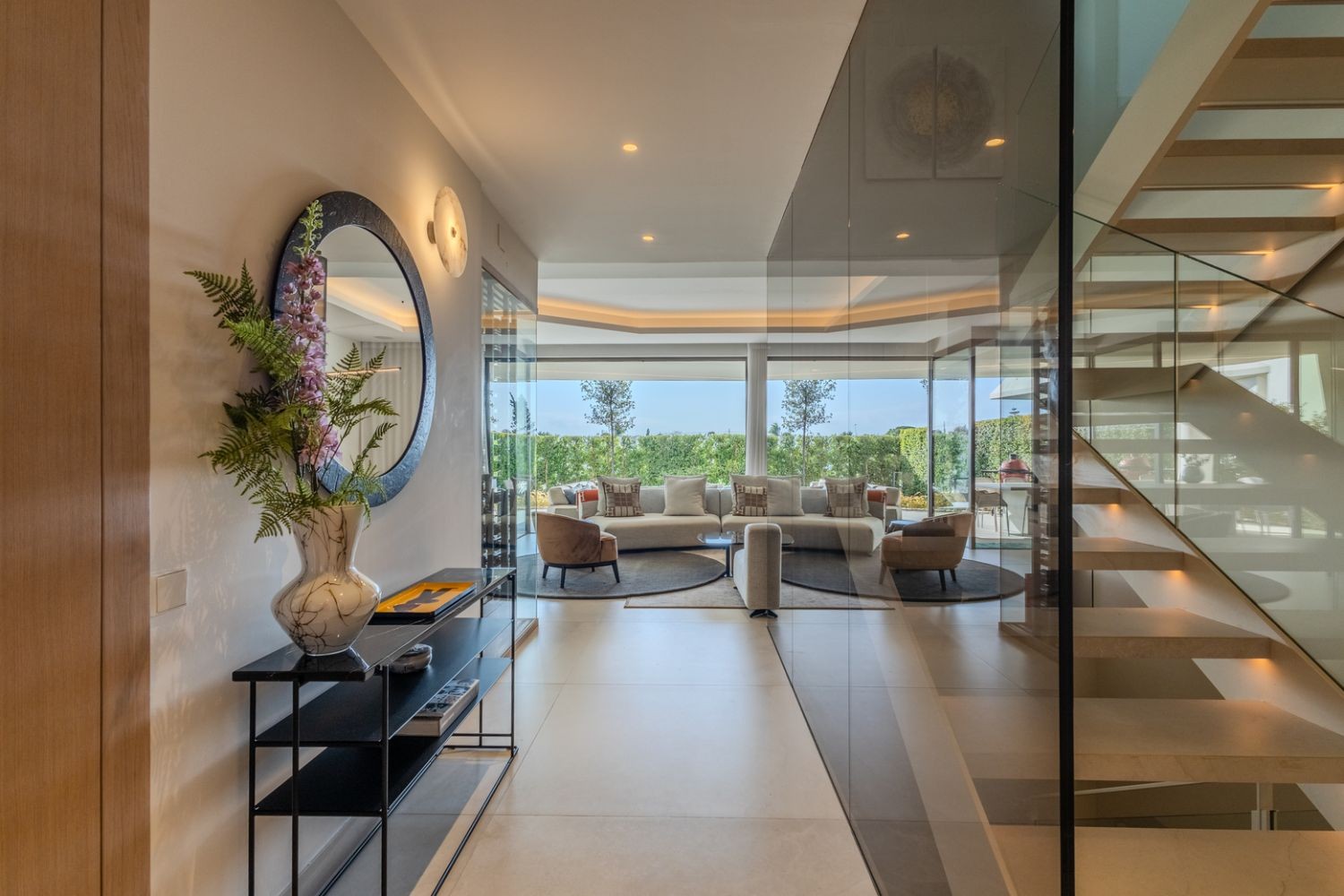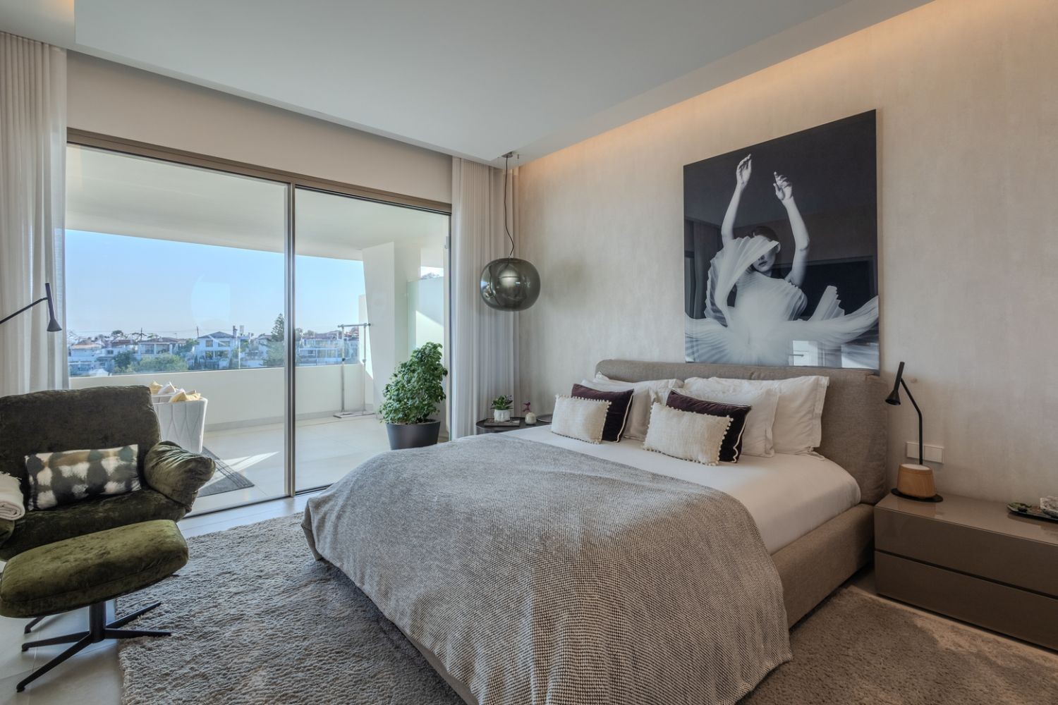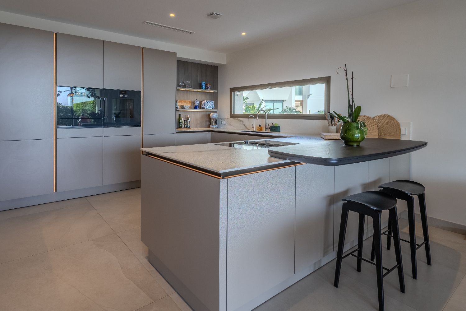 Welcome to this splendid semi-detached property, part of an exclusive housing project. Nestled in a secure community in Nueva Andalucia, this modern architectural jewel shines with its clean lines, mesmerizing geometric exterior, and chic natural materials in soothing neutral shades.