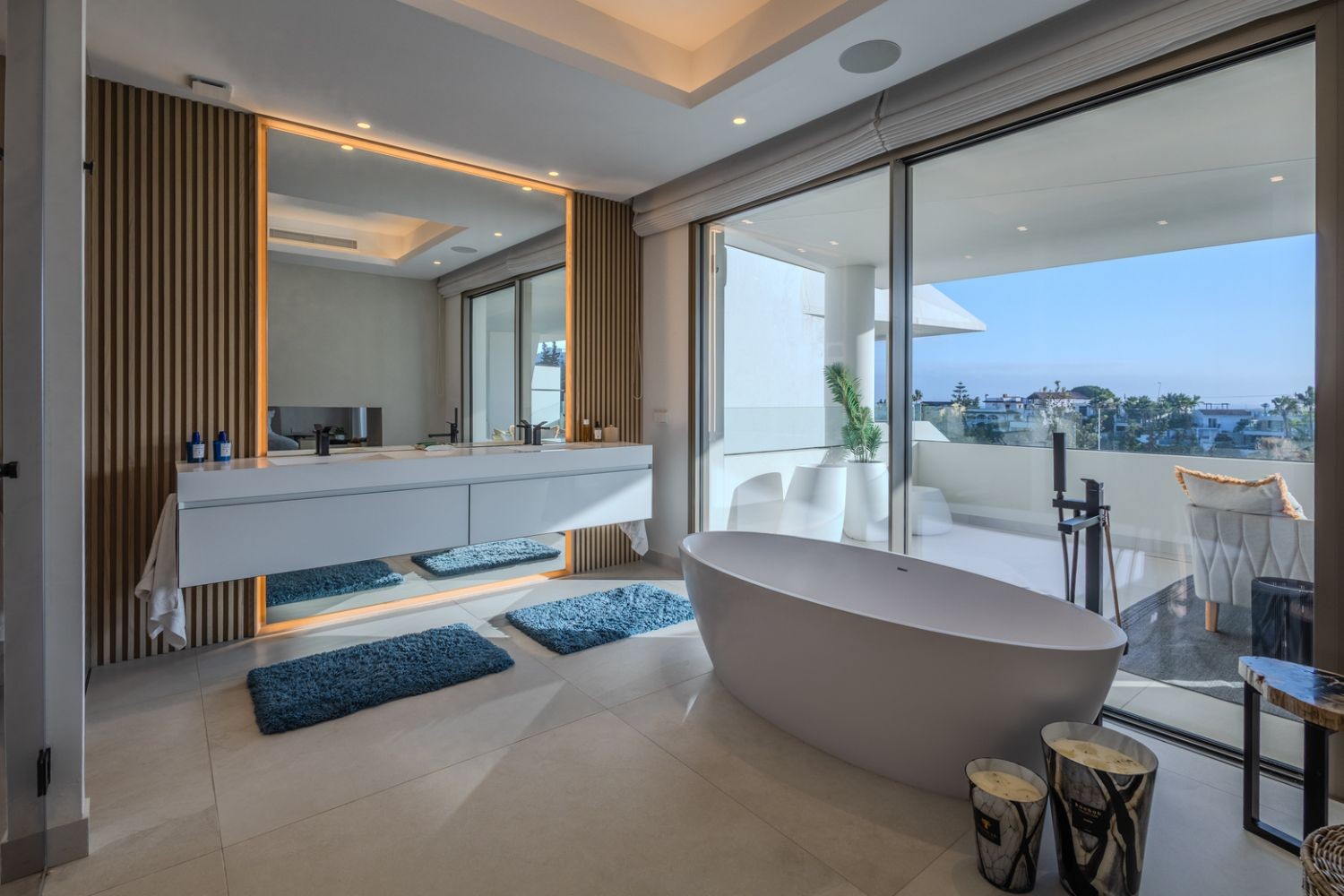 The property invites you to embrace the outdoors with a covered terrace perfect for dining and relaxation. A custom-designed solarium with a private pool offers awe-inspiring panoramic views of the Valley, La Concha, the Mediterranean Sea, and Gibraltar. Spanning four floors, this outstanding home includes four bedrooms, each with ensuite bathrooms, a top-of-the-line kitchen, and underfloor heating for ultimate comfort. A private garage with space for up to two/three cars ensures unparalleled convenience. This modern home also provides easy access to local amenities and essential services. As a bonus, it comes fully furnished, with the interior design crafted by Ambiance. We invite you to immerse yourself in luxury living in Marbella with this extraordinary property.
