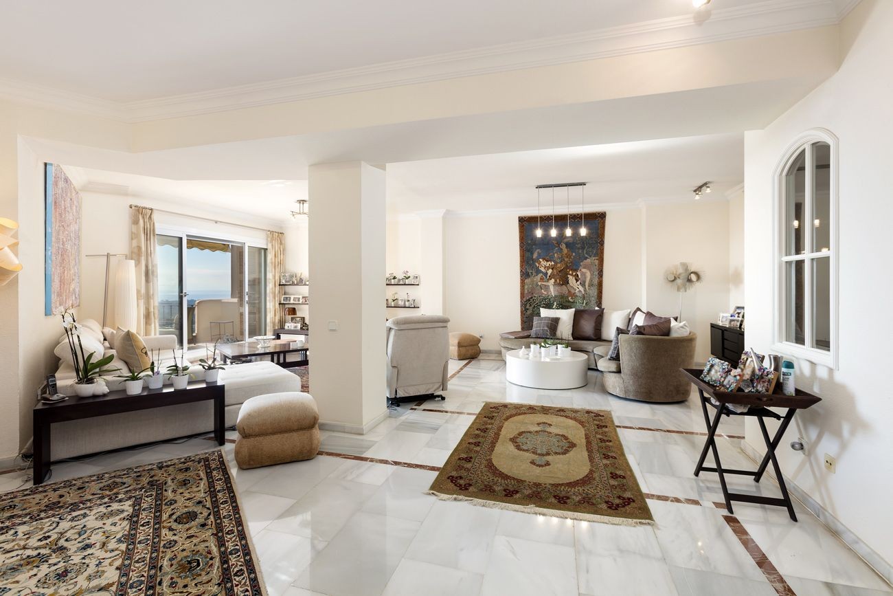 Extremely large apartment in the famous and very popular Las Belvederes in Marbella. 3 very large bedrooms with 3 bathrooms, and set on difference floors which gives you the feeling of being in a house! The apartment has a south facing aspect with the most incredible panoramic views on the Costa Del Sol. You have the wonders of sea views and moutain views, with even occasionally Morrocco and the African Continent on a clear day. The apartment comes in impeccable condition and full of Andalucian character. The development offer very good security along with a tennis court and a large swimming pool with also the most incredible views across the Costa.