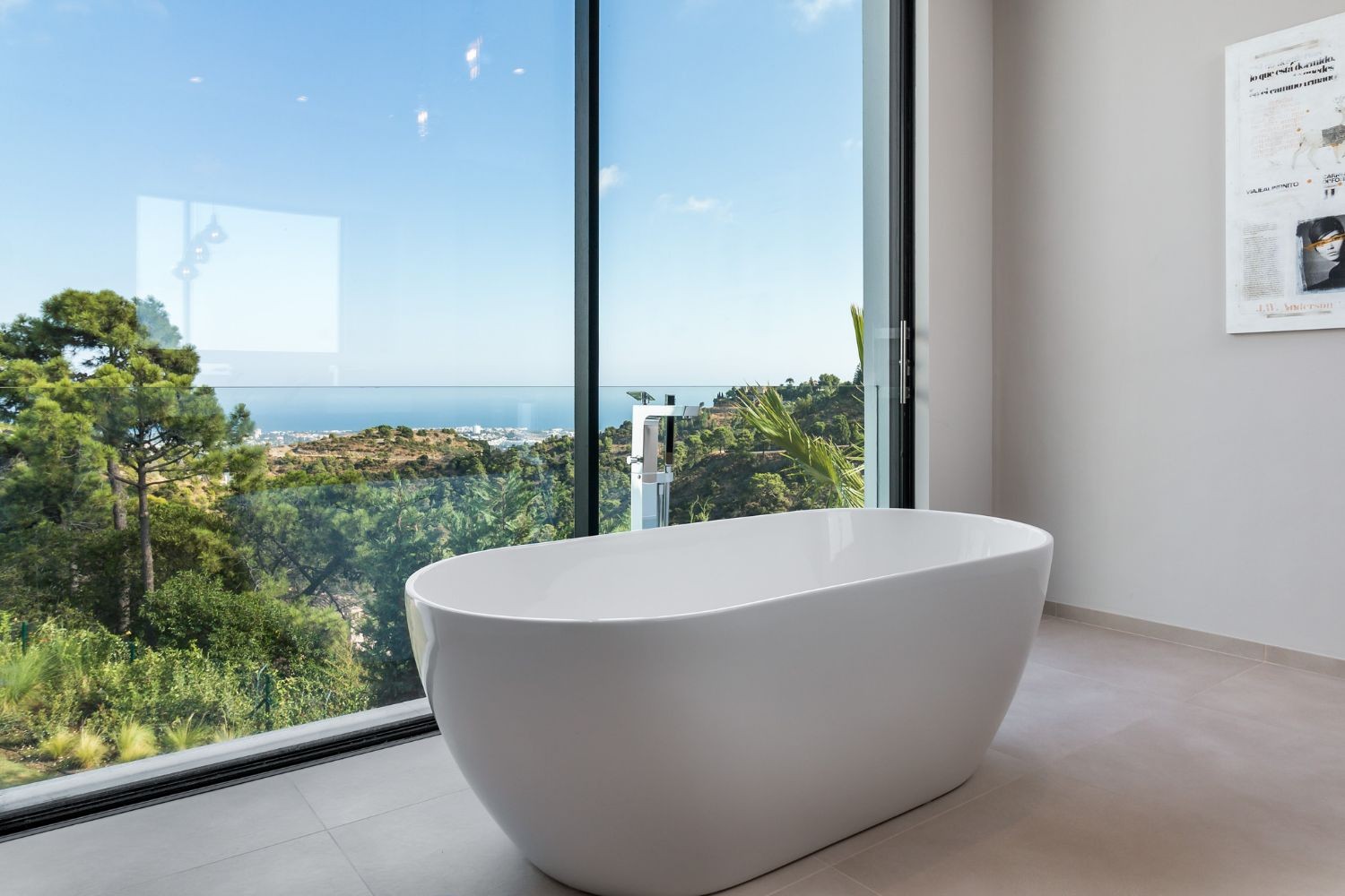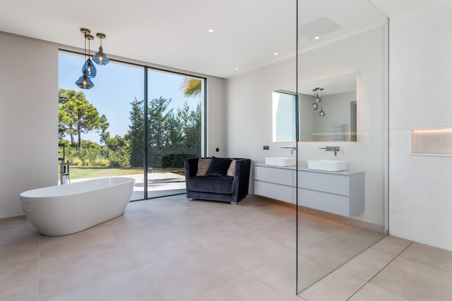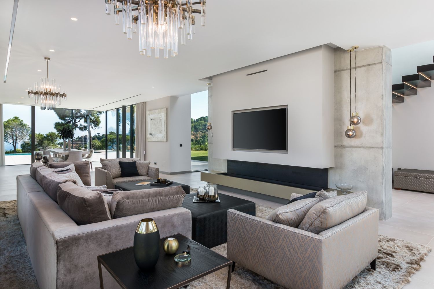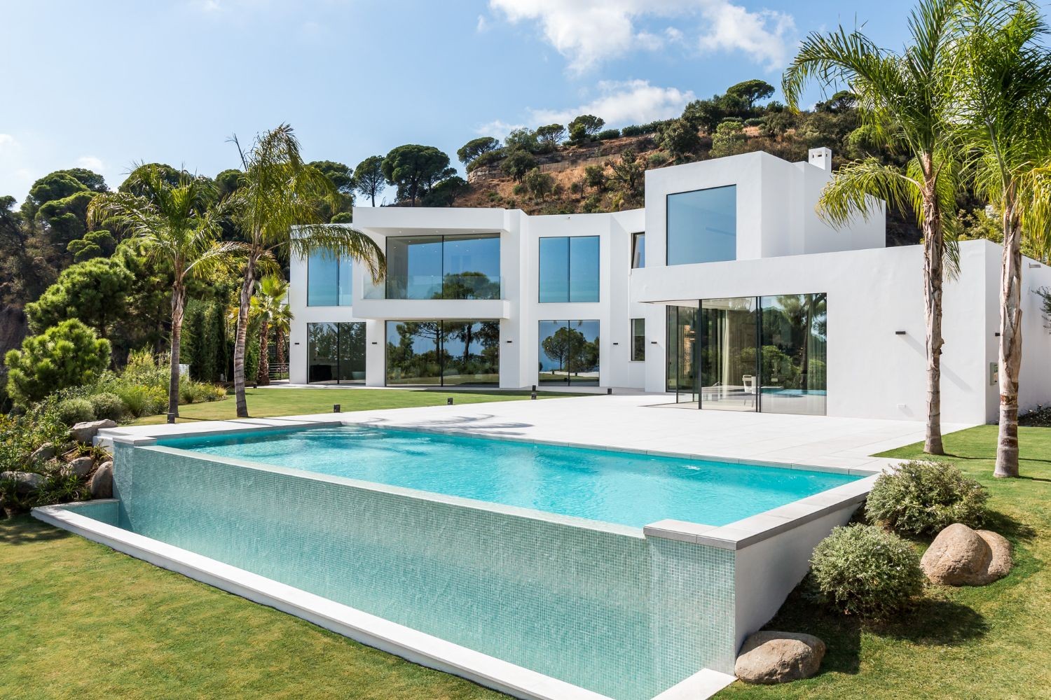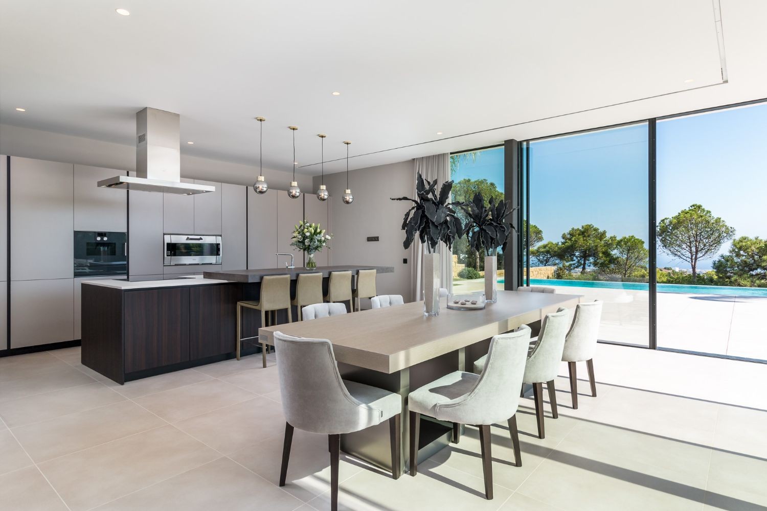 the whole property at once. An iridescent mosaic tiled infinity pool leads back to the stunning southerly views across the