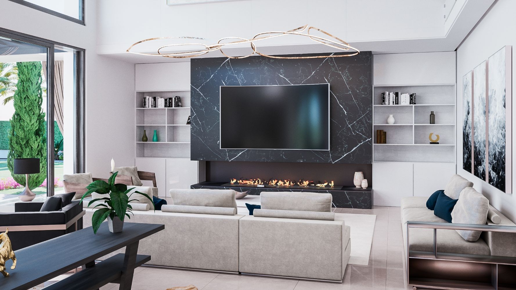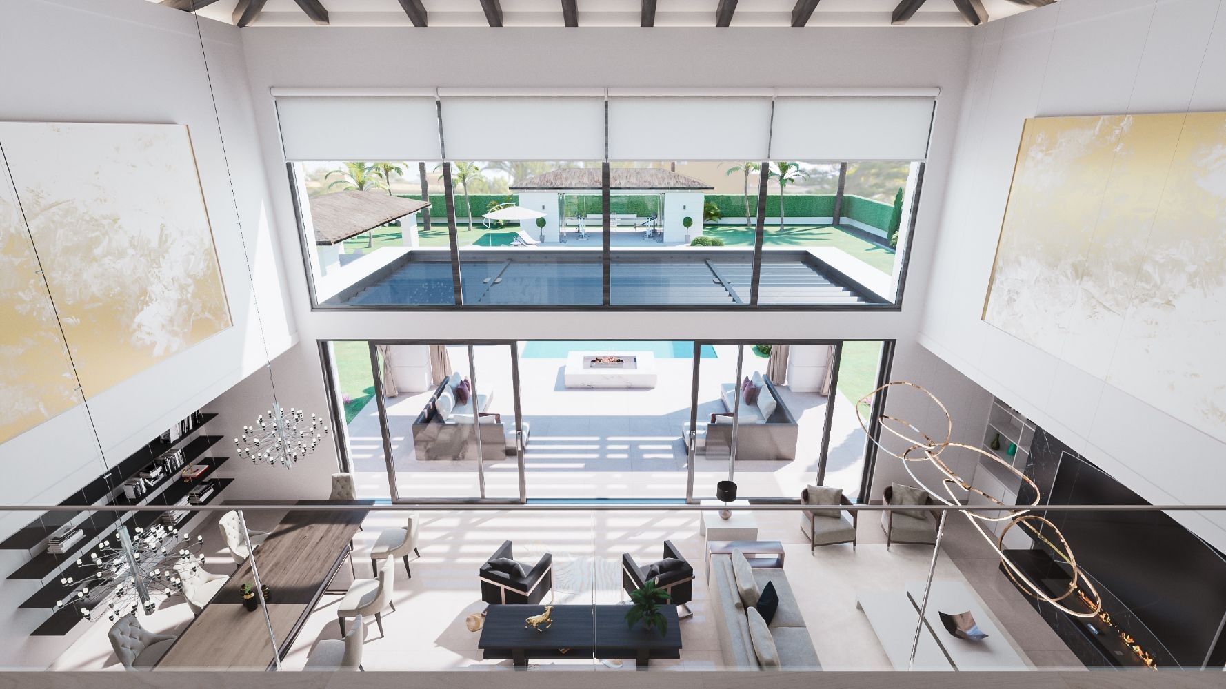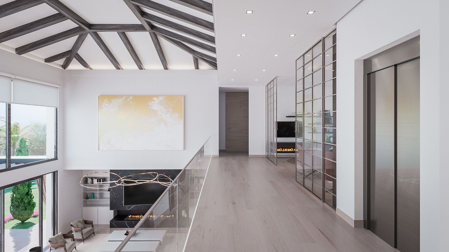 place to live due to its’ proximity to Marbella city centre and all the amenities of the zone: high-quality shopping centres, international colleges and five star restaurants. Villa Alegría is a contemporary villa with unique design, with a general plot of 1640 metres and with 611 meters of living space. It features 5 bedrooms, 5 bathrooms, a spacious and panoramic living room with high double ceilings and a large number of areas for work, entertainment and wellness. It is also provided with all the necessary utility rooms and a comfortable garage. Every detail of this villa matches its’ quality and uniqueness: wine-room, home-cinema, personal GYM with SPA area featuring Turkish hamam and Finnish sauna. A large barbeque zone is a perfect place for family and friends time.