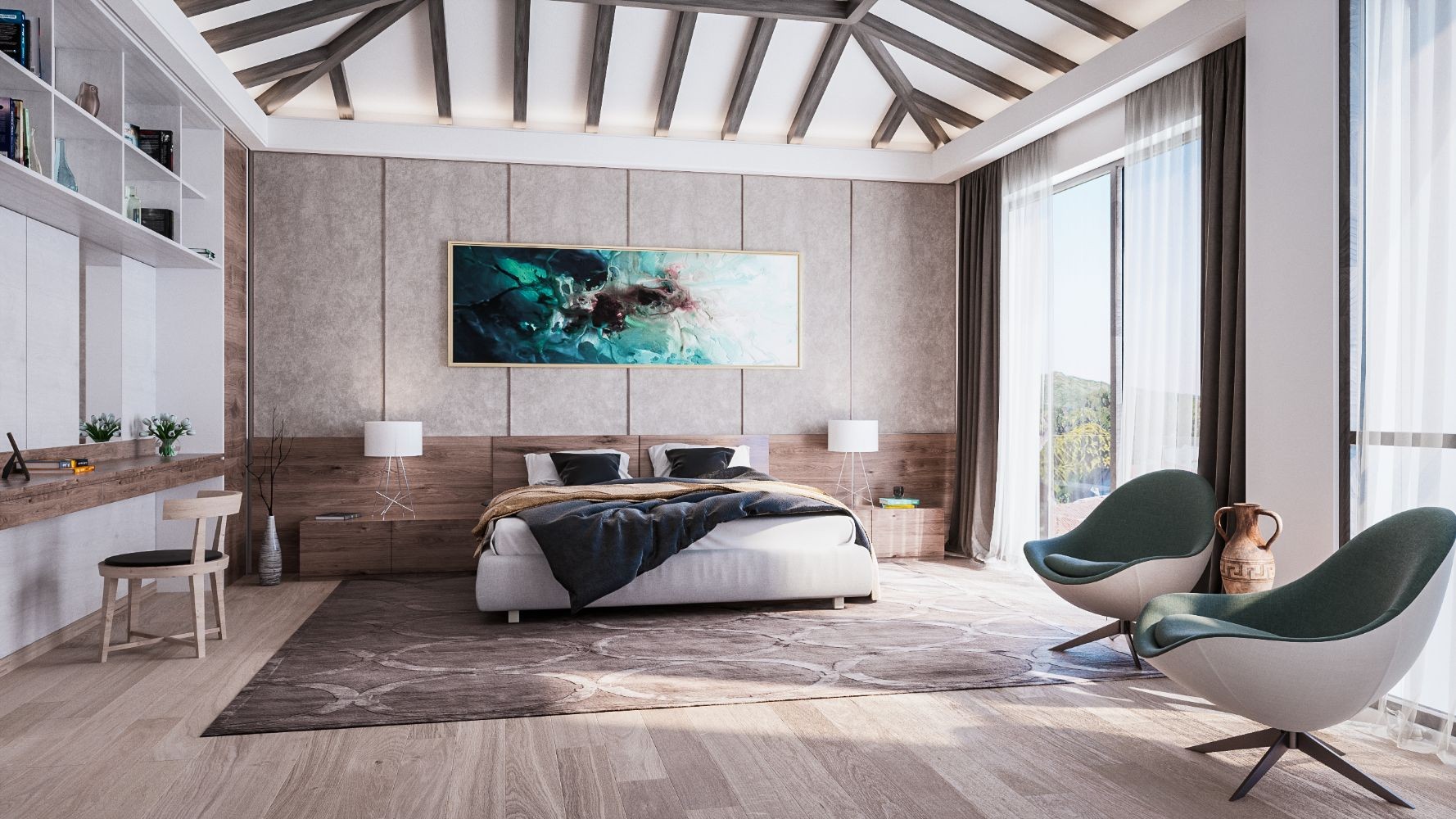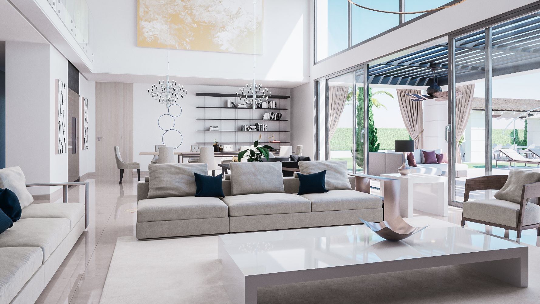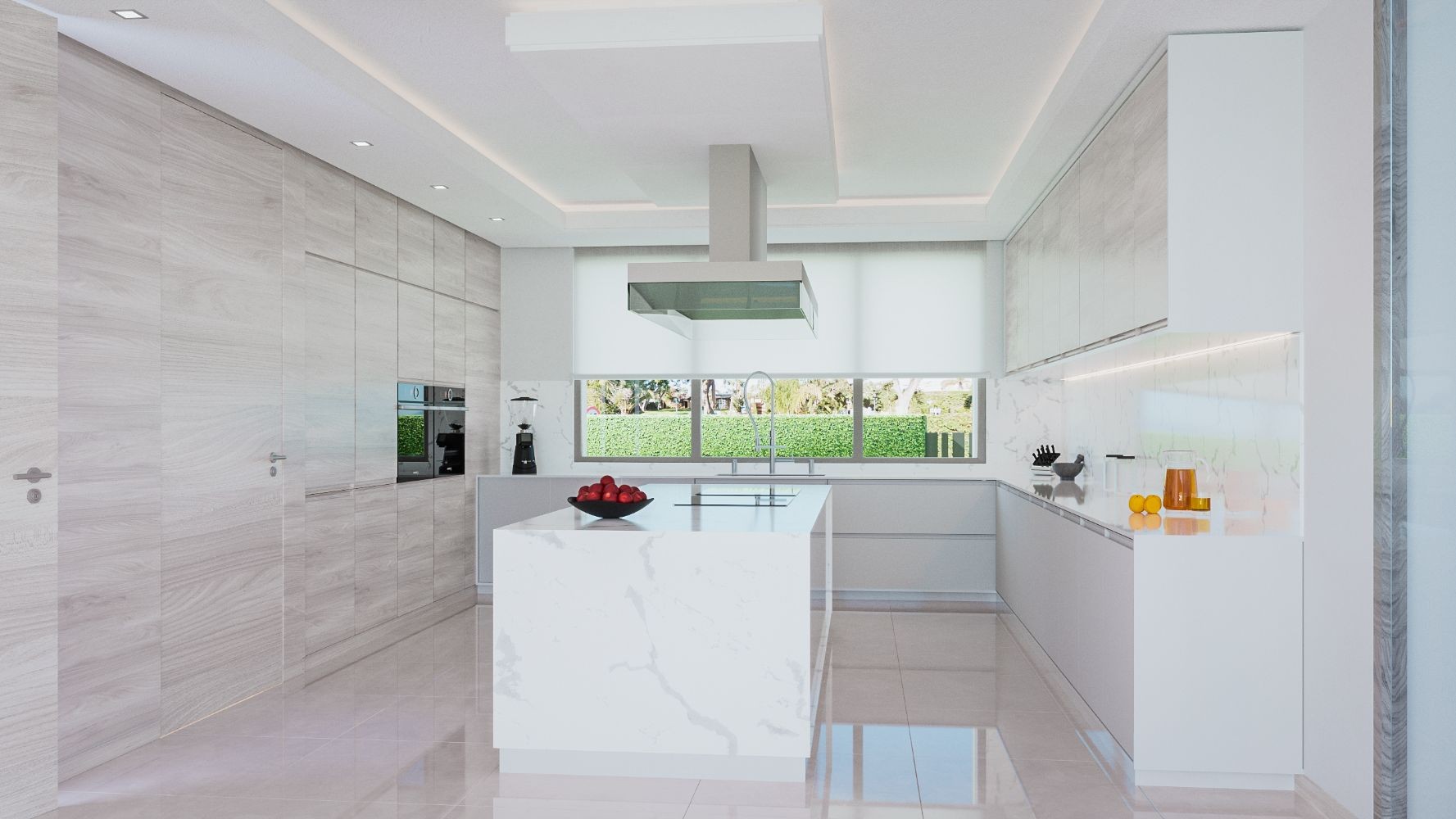 place to live due to its’ proximity to Marbella city centre and all the amenities of the zone: high-quality shopping centres, international colleges and five star restaurants. Villa Alegría is a contemporary villa with unique design, with a general plot of 1640 metres and with 611 meters of living space. It features 5 bedrooms, 5 bathrooms, a spacious and panoramic living room with high double ceilings and a large number of areas for work, entertainment and wellness. It is also provided with all the necessary utility rooms and a comfortable garage. Every detail of this villa matches its’ quality and uniqueness: wine-room, home-cinema, personal GYM with SPA area featuring Turkish hamam and Finnish sauna. A large barbeque zone is a perfect place for family and friends time.
