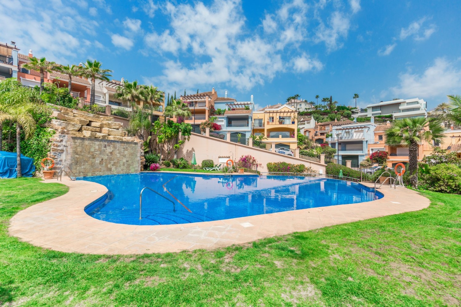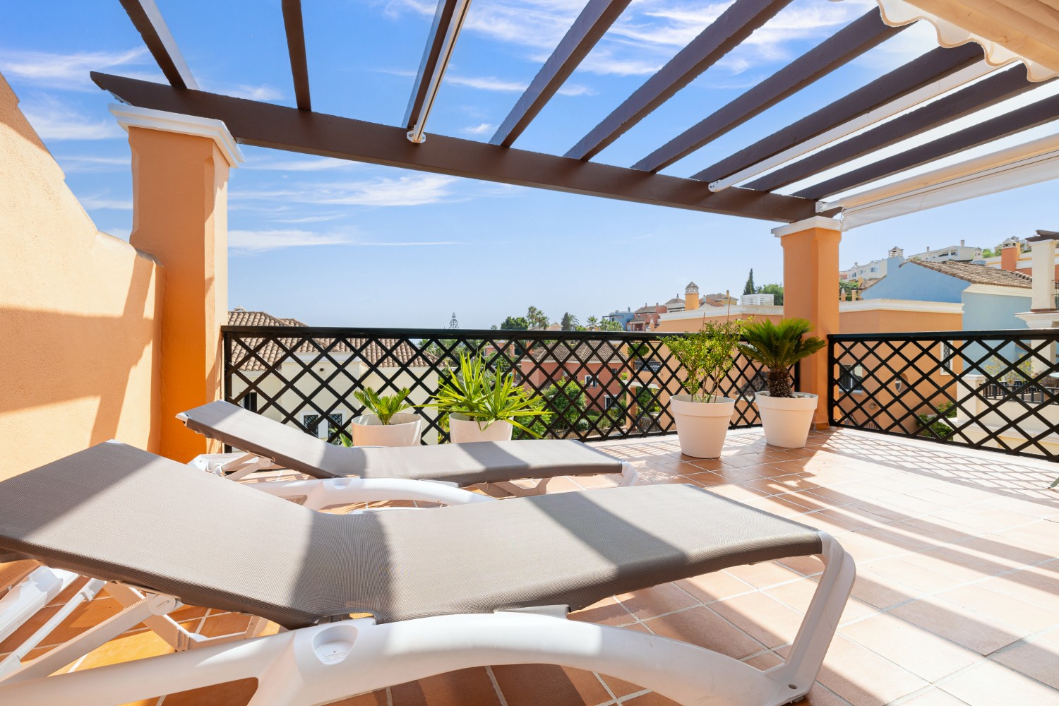 This stunning 4-bedroom, 3-bathroom townhouse is located in the heart of Golf Valley, Nueva Andalucía, within the exclusive gated community of Brisas del Sur. Bright and modern, it features a spacious living and dining area, fully equipped kitchen, guest toilet, utility room, and 42 m² of terraces with panoramic sea views.