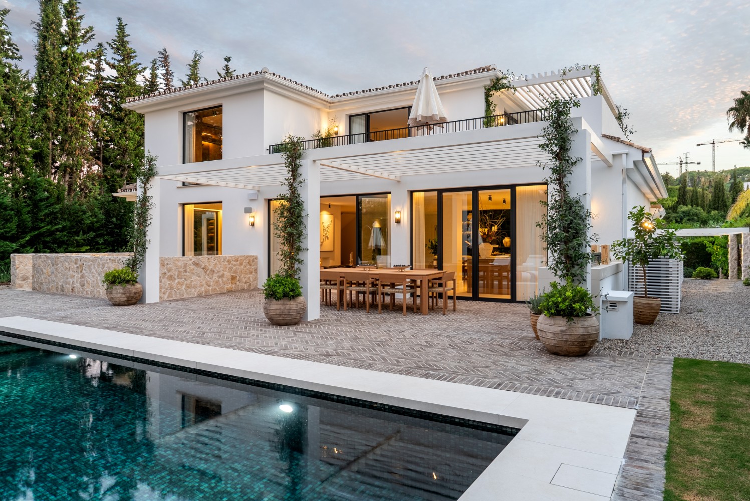 This exceptional villa seamlessly blends contemporary design with timeless Italian elegance, creating a luxurious and sophisticated sanctuary in the heart of Marbella. Ideally located on the prestigious Las Brisas golf course, it offers serene views of the iconic La Concha mountain, surrounded by lush, peaceful landscapes, while being just moments from essential amenities, renowned golf courses, and top international schools.