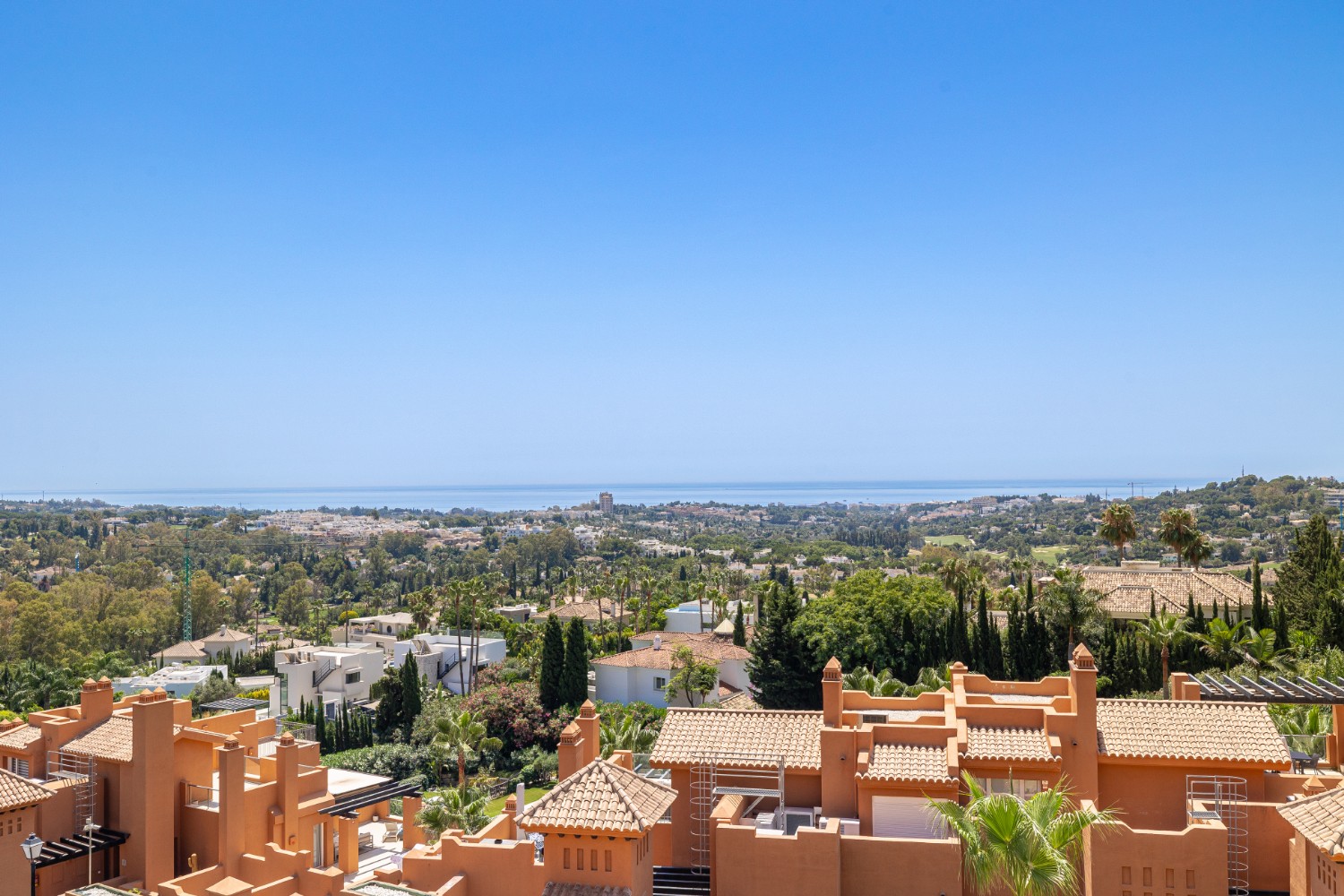 Les Belvederes is a prestigious gated community in La Cerquilla, Nueva Andalucía, offering breathtaking panoramic views of the Mediterranean Sea. This secure development features 24-hour security and resort-style amenities, including a large pool, gym, sauna, and tennis and padel courts.