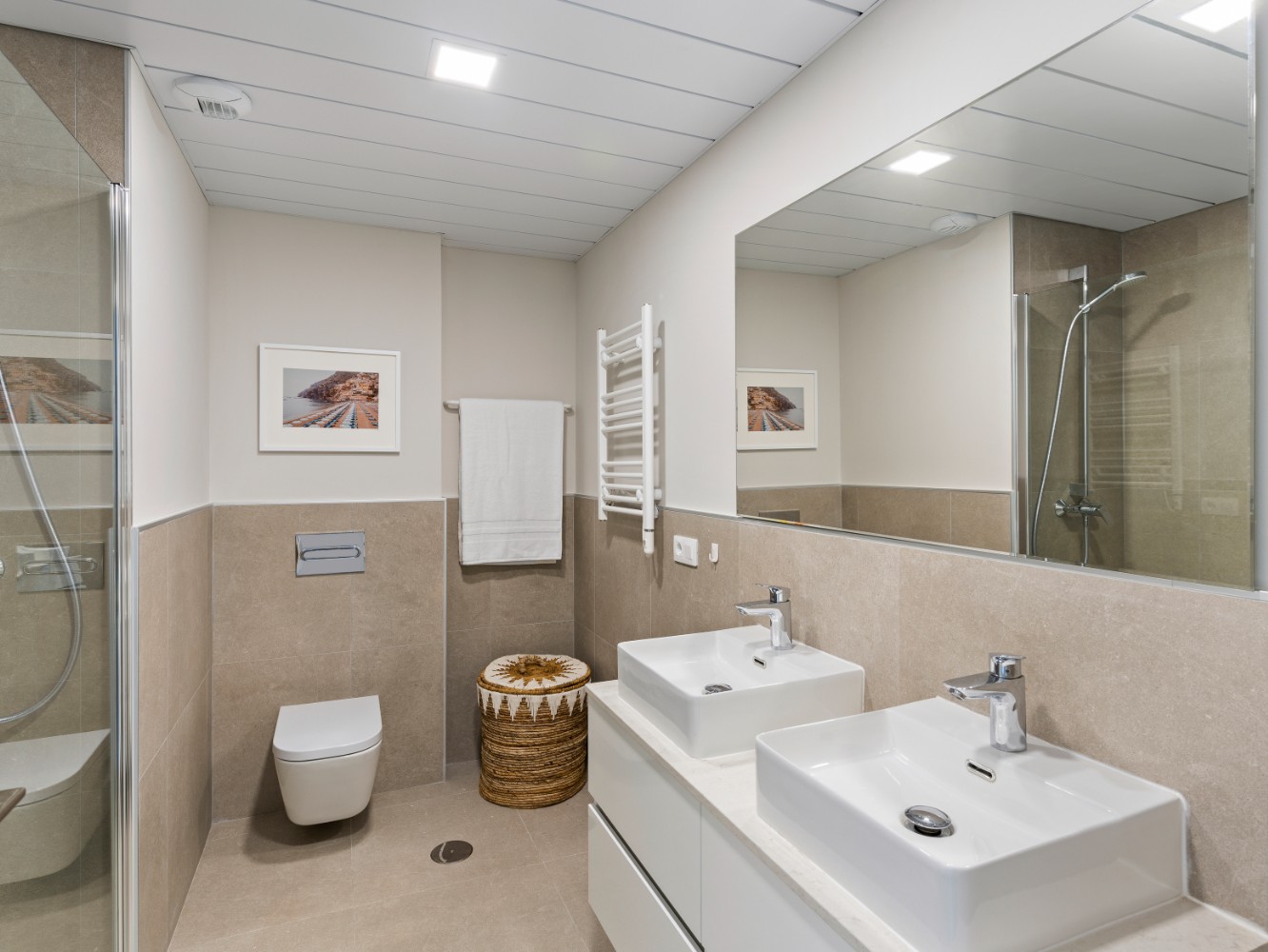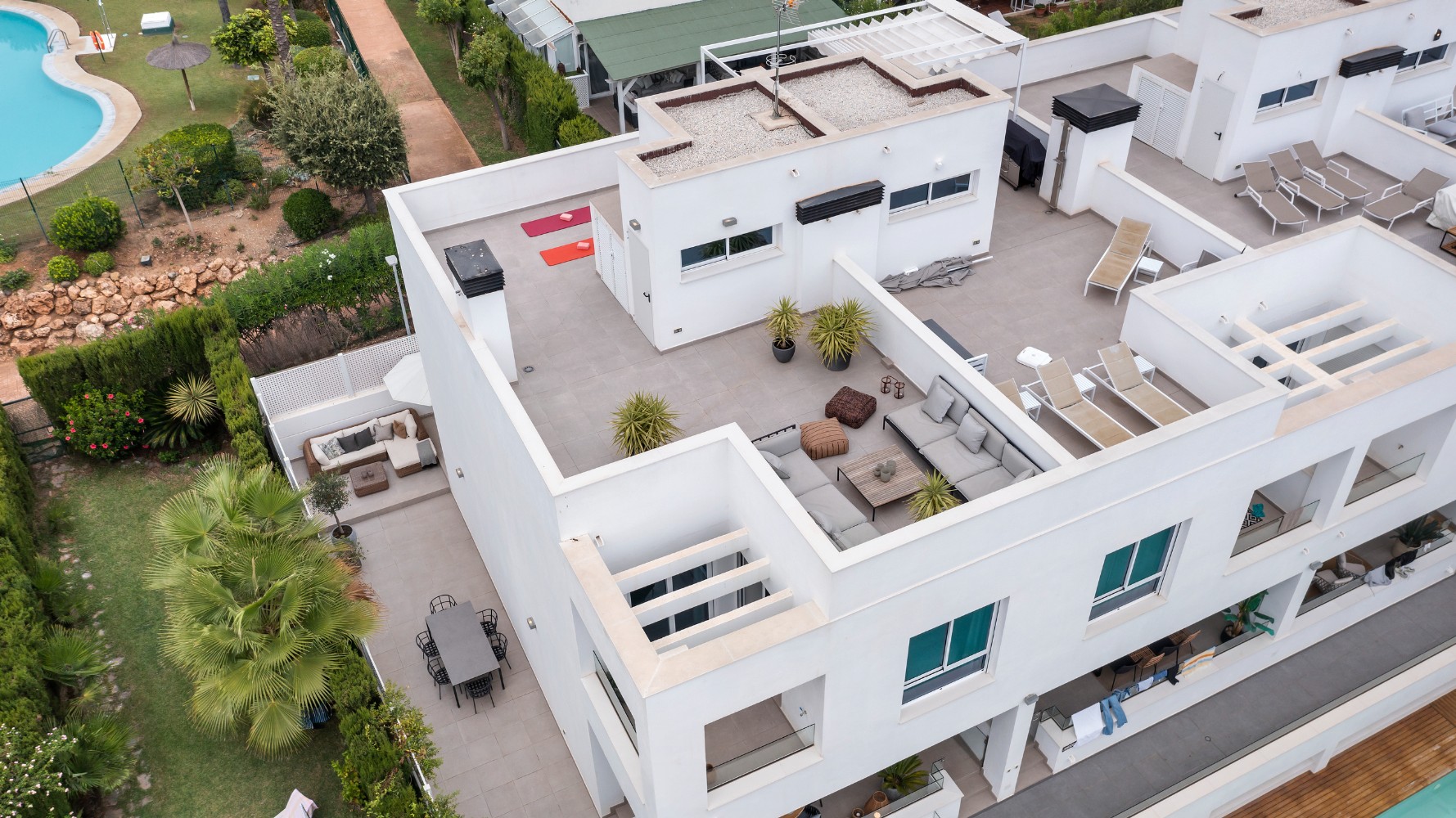 On the ground floor, you'll find one bedroom and a full bathroom, along with a fully equipped Siemens kitchen, an open dining area, and a generous living room that opens onto a 20 sqm terrace—perfect for indoor-outdoor living. The first floor offers four additional bedrooms, two bathrooms, and a cozy 8 sqm terrace. The highlight of the home is the stunning 61 sqm rooftop terrace, with pre-installed water and electricity connections, giving you the opportunity to add an outdoor kitchen, jacuzzi, shower, and more—making it an ideal space for entertaining or relaxing under the sun.
