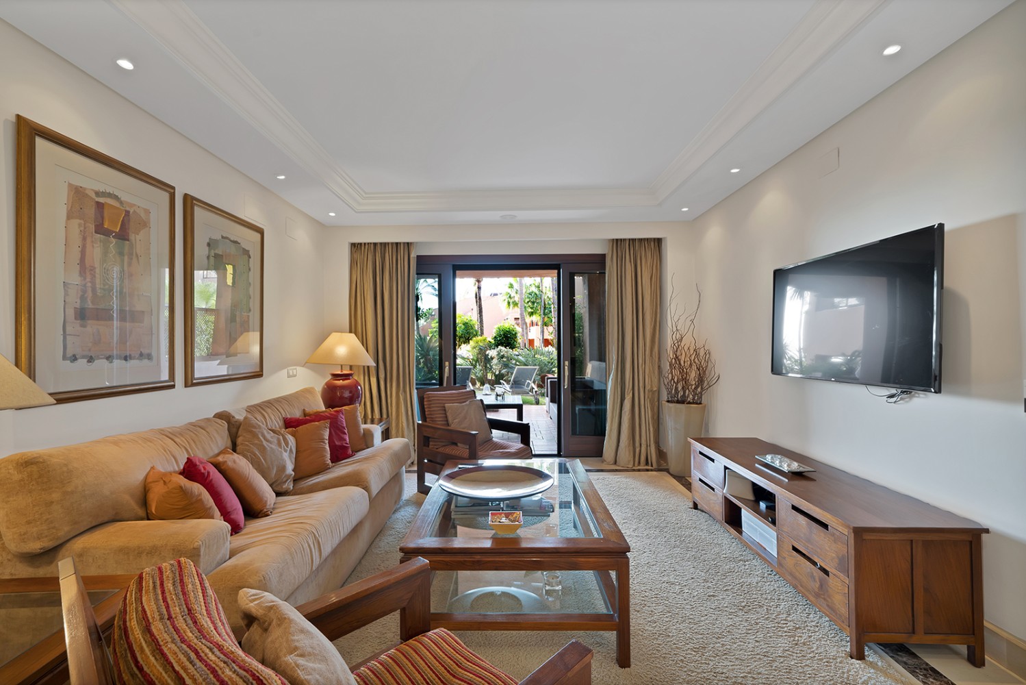 The apartment features a private garden and a covered terrace with open sea views—perfect for relaxed outdoor living and entertaining.